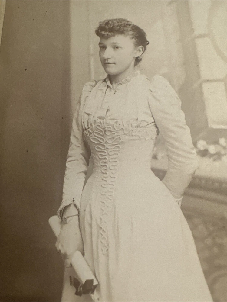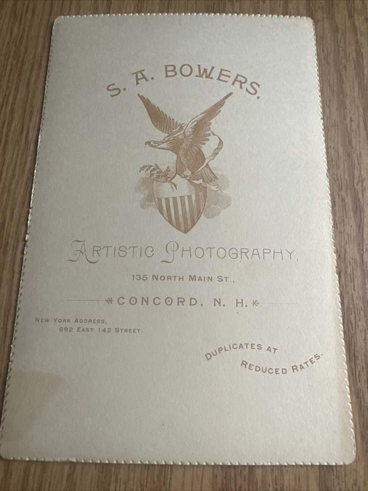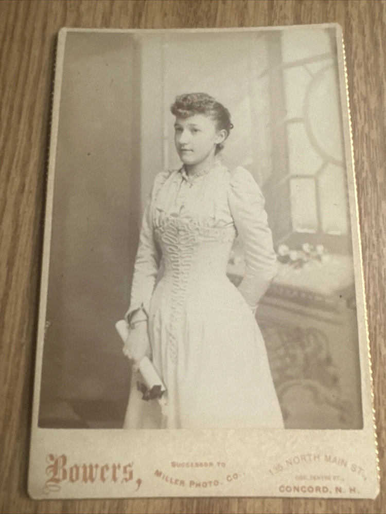 This antique cabinet card photograph depicts a beautiful woman in stunning detail holding a rolled document possible diploma. The photograph was produced between 1875-1900 by S.A. Bowers in Concord, New Hampshire. The vintage photograph is a one-of-a-kind piece that would make a great addition to any collection. The photograph measures 4.25 x 6.5 inches and is in excellent shape. It features a bust of the pretty woman, with no noticeable flaws or defects. This collectible item would be a great conversation starter and is sure to impress any antique photography enthusiast. Our Terms Shipping and Handling for our Photographs is $5.00. This rate is good for a single photograph or unlimited number of photographs. We ship First Class by USPS with bubble mailers when your total order is less than $100.00. If your total order exceeds $100, we will ship by USPS Priority Mail. All packages shipped will include a tracking number. We have a 14-day return policy for all items. We will leave feedback when your item is packaged and shipped. Please return this feedback as our receipt you have received the item. SJ