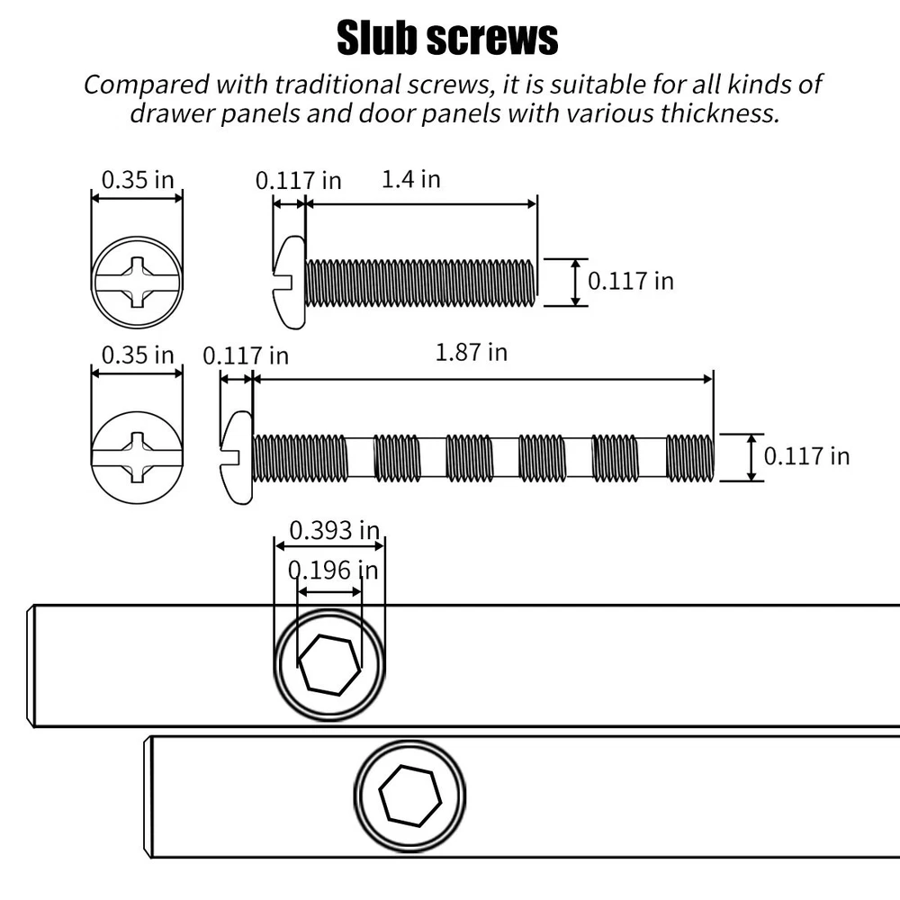 These Cabinet Pulls are made of Hollow Tube stainless steel bar, with Brushed Nickel Finish. Strong & Durable Hardware, these pulls can prove functional & elegant throughout the years. Brushed nickel bar pull: Overall Length: 6"(150mm), Hole Centers(CC): 3-3/4"(96mm), Diameter: 12mm. Perfect for different styles of cabinets, wardrobe, wine cabinet, locker, dresser and other furniture decorated. Package includes: 30 x T Bar Drawer Pulls, 60 x 1" Mounting Screws, 60 x 1.87" Detachable Strews. Matched Standard screws are 1.87" length which range for kinds of door thickness. 2 Screw Sets: We've added not but 2 screw sets to accommodate your unique cabinets and drawers.