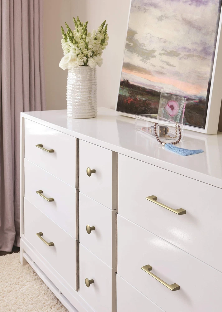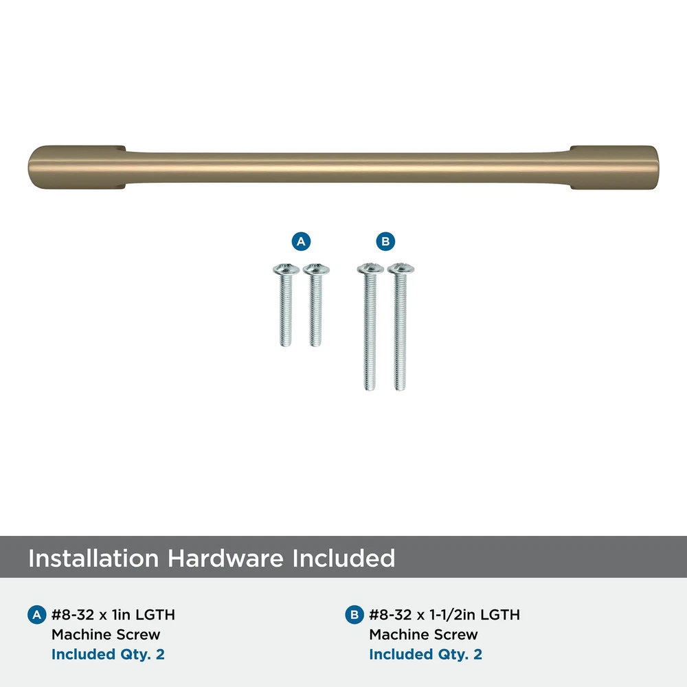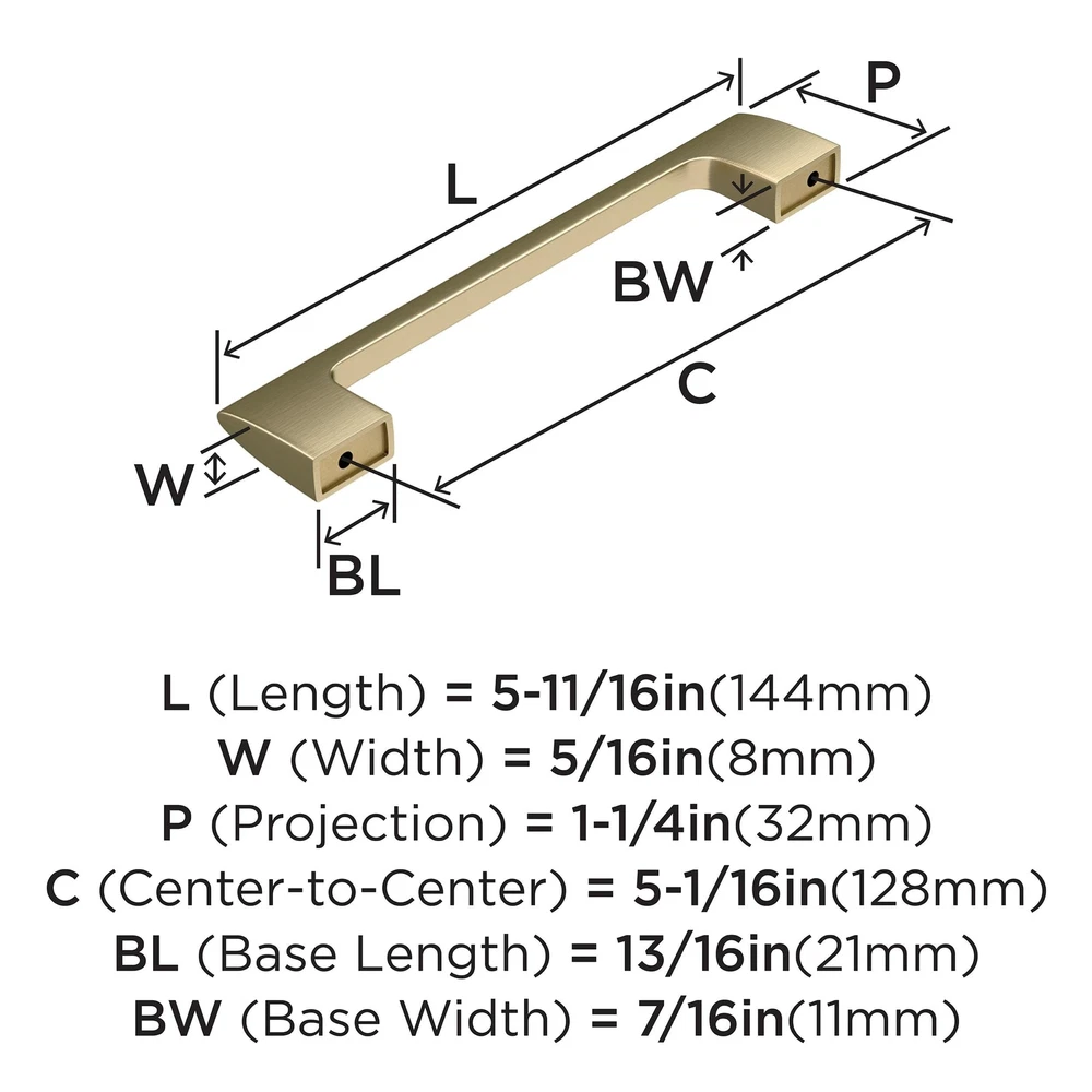 The Allison by BP55367BBZ Riva 5-1/16 in (128 mm) Center-to-Center Pull is finished in Golden Champagne. A focus on the beauty of the straight line and showcasing thoughtfully executed proportions, Riva's minimalistic appearance creates a stand-out design. Its desirable, streamlined look enhances any space. Warm and inviting without being brassy and featuring hints of silver in reflective light, our Golden Champagne finish elevates designs with enviable versatility. Use for a soft and elegant touch on lighter finishes or as a contrasting pop against darker finishes. Founded in 1928, ’s award-winning home solutions including decorative and functional cabinet hardware, bath accessories, decorative hooks and wall plates have built the company’s reputation for chic design accessories that inspire homeowners to express their personal style. Ideal for residential or commercial applications, Allison by marries beauty and function. It’s the best combination of approachable artistry and lasting quality. 5-1/16 in (128 mm) Center-to-Center Pull Finished in Golden Champagne exclusive design Includes mounting hardware: #8-32 x 1 in. Truss Head Machine Screw & #8-32 x 1-1/2 in. Truss Head Machine Screw DISCLAIMER - We do our best to show colors accurately, but they might look different on your screen due to individual monitor settings. Golden Champagne is a COOL, neutral gold with slight blue undertones