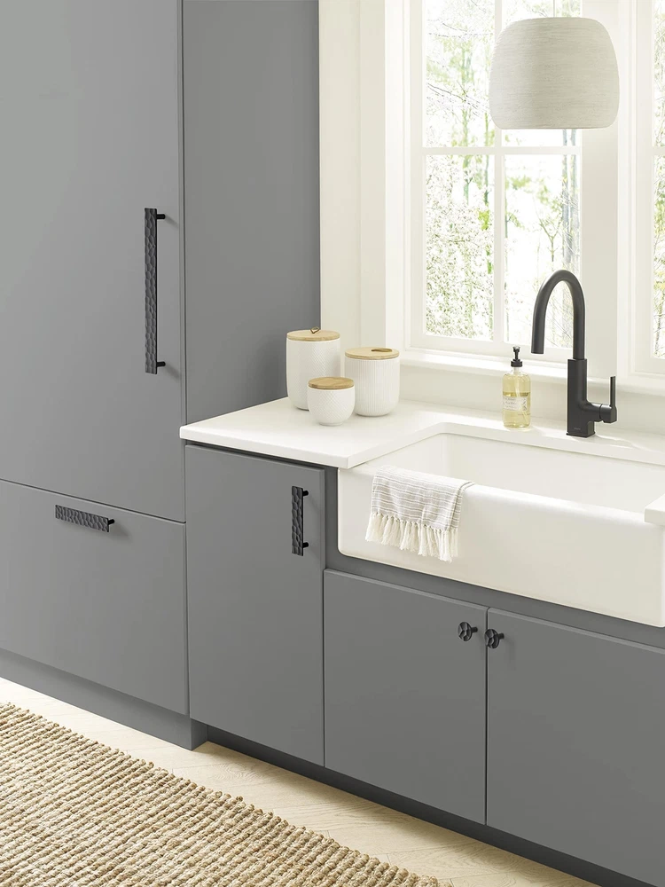 The BP36822MB Kamari 3-3/4 in (96 mm) Center-to-Center Pull is finished in Matte Black. Drawing inspiration from the sand patterns found on exotic volcanic beaches, the Kamari collection features a scalloped surface that adds a high-end designer look to any cabinet or drawer. The backdrop of starred skies and elegant evenings, black can be unmistakably striking. Matte Black adds a simple, yet bold statement to any room. Founded in 1928, ’s award-winning home solutions including decorative and functional cabinet hardware, bath accessories, decorative hooks and wall plates have built the company’s reputation for chic design accessories that inspire homeowners to express their personal style. offers a variety of styles and finishes at affordable prices that add the perfect finishing touch to any room. VERSATILE - Contemporary style adds an easy designer upgrade to any cabinet drawer, cabinet door or furniture piece DURABLE - High quality construction for lifelong durability CONVENIENT - Mounting hardware included for quick and easy installation - Coordinates seamlessly with finishes from popular plumbing and lighting brands DISCLAIMER - We do our best to show colors accurately, but they might look different on your screen due to individual monitor settings