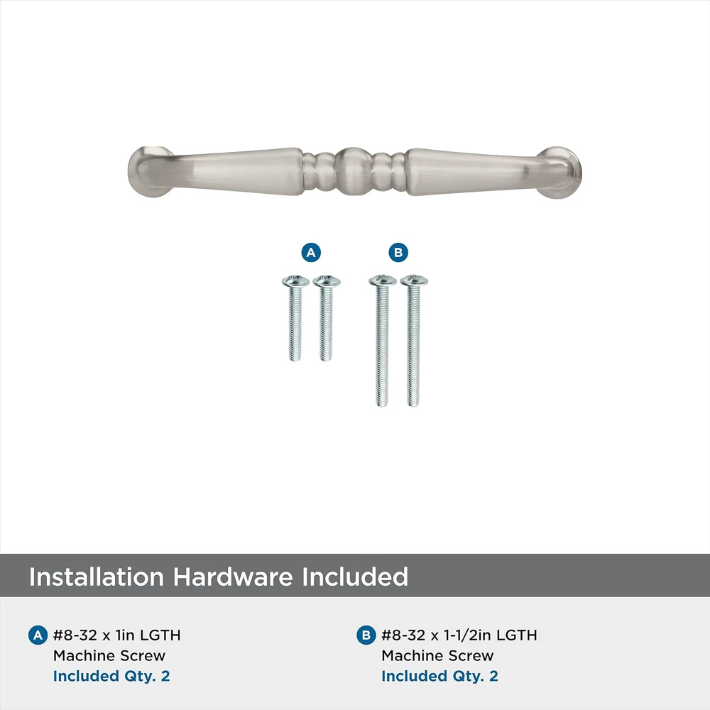 3 in (76 mm) Center-to-Center Pull Finished in Satin Nickel Intricately crafted with precise detail for lifelong beauty and durability Includes mounting hardware: 8-32 x 1 in. Truss Head Machine Screw Uncompromised quality at an unbeatable price The Amerock BP53006G10 Allison Value 3 in (76 mm) Center-to-Center Pull is finished in Satin Nickel. From rustic to modern-day casual to sophisticated beauty, The Allison(TM) Value Collection offers a variety of designs, making on-trend, quality hardware affordable. The classic Satin Nickel finish provides a sleek, lightly brushed, warm grey metallic look. Amerock offers a complete line of decorative and functional cabinet hardware, bath hardware, hook and rail and wall plates. Amerock’s award-winning decorative and functional hardware solutions have built the company’s reputation for chic design accessories that inspire homeowners to express their personal style. Available in a variety of finishes and styles, Amerock offers high quality designs at affordable prices. Always Creating. Always Timeless. Always Amerock.