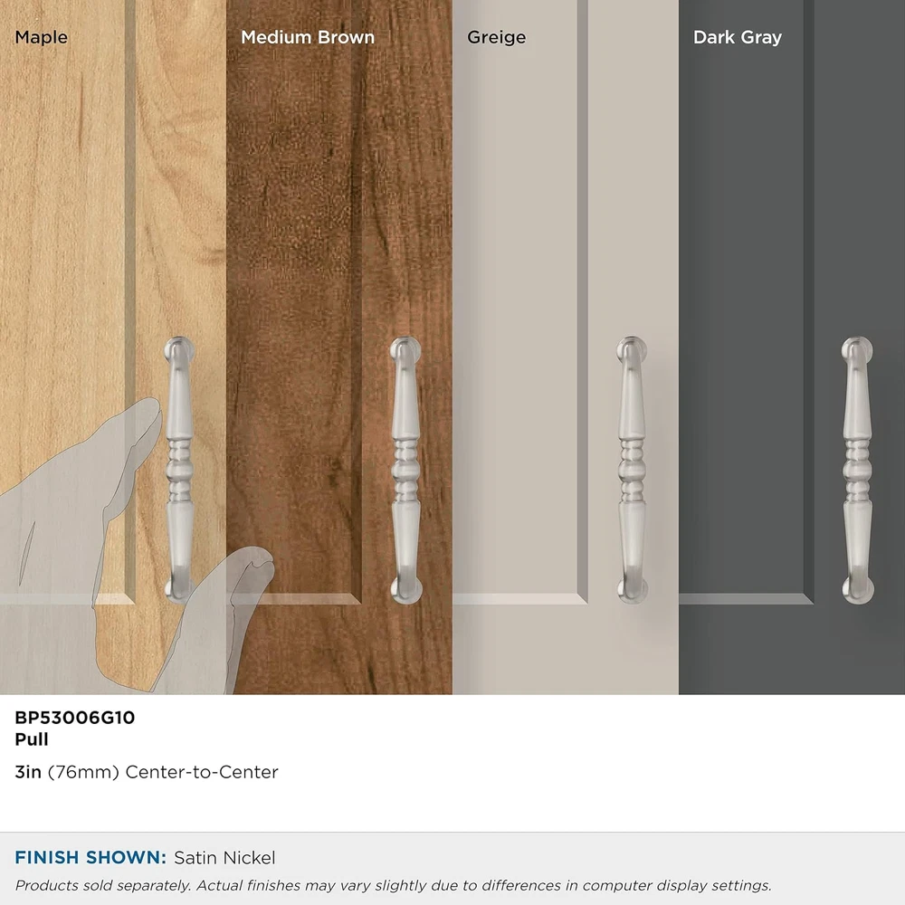 | Cabinet Pull | Satin Nickel | 3 Inch (76 Mm) Center to Center | Every