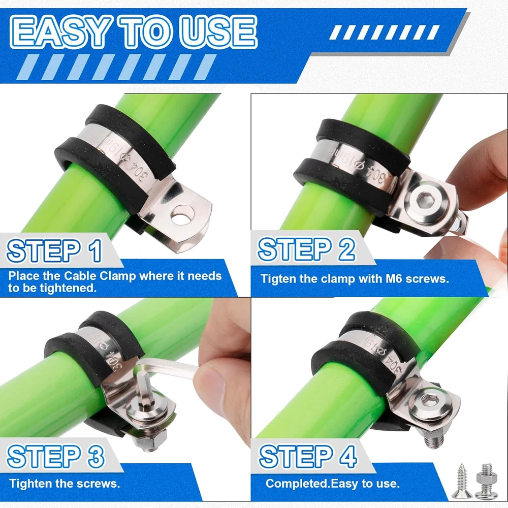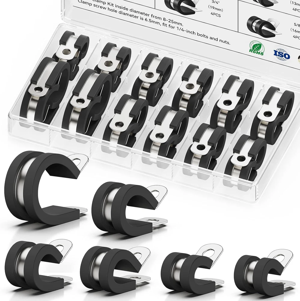 Store New Arrivals Add to Favorite View Feedback Contact Cable Clamps Assortment Kit, 24PCS Stainless Steel Rubber Cushion Pipe Clamps, 6 Sizes (5/16" 3/8" 1/2" 5/8" 3/4" 1") for Cable, Wire, and Pipe Management Description Item model number 24PCS Cable Clamps Item Package Quantity 1 Item dimensions L x W x H 8.3 x 3.9 x 1.2 inches Color Metallic Material Stainless Steel Country of Origin China Style 24Pcs Kit Item Weight 11.2 Ounces Batteries Required? No Product Dimensions 8.3 x 3.9 x 1.2 inches Included Components 24PCS Cable Clamp Kit 【Versatile Assortment】This kit includes 24 stainless steel cable clamps in 6 popular sizes (5/16", 3/8", 1/2", 5/8", 3/4", 1") for securing wires, pipes, and cables. The variety of sizes ensures flexibility and adaptability for different usage scenarios and clamping needs, making it a versatile cable clamp set. 【Durable Construction】Made of high-quality 304 stainless steel with rubber cushions, these wire clamps ensure excellent corrosion resistance and long-lasting durability. The rubber cushioning prevents scratches and damage, providing reliable protection in harsh environments. 【Secure Grip】Featuring a robust design, these rubber insulated clamps provide a firm grip to hold cables, wires, and pipes in place without slipping. The high clamping force and secure locking mechanism ensure tight and reliable performance for all your clamping needs. 【Wide Application】Suitable for automotive, home, office, and industrial use, these cushion clamps handle various clamping needs. Ideal for plumbing, automotive, and mechanical fields, they meet demands for pipe, fuel line, and duct clamps in DIY and professional projects. 【Easy Installation】These cable clamps are designed for simple and easy installation, ensuring a secure fit. Users can quickly complete the installation without special tools or complex steps, saving time and effort while ensuring the safe fastening of cables and pipes. Product Description DLOUBLEIY Cable Clamps Assortment Kit, 304 Stainless Steel Rubber Cushion Hose Clamps DLOUBLEIY focuses on providing high-quality and cost-effective cable clamp products. DLOUBLEIY cable clamps are our newly launched premium product, made of 304 stainless steel, offering exceptional corrosion resistance and rust prevention for various indoor and outdoor environments. DLOUBLEIY rubber insulated cable clamps boast excellent flexibility and adaptability, suitable for automotive, electronics, home, and more, securely fastening cables, wires, pipes, and hoses. DLOUBLEIY cable clamps excel not only in functionality but also in ease of installation and maintenance. Users can easily adjust and install them, saving valuable time and expensive repair costs. Choose DLOUBLEIY cable clamps to enhance your clamping experience. Trust in our quality and performance to provide reliable and efficient solutions across various industries. DLOUBLEIY 24PCS Cable Clamp Assortment Kit, Stainless Steel Wire Clamp with Rubber Insulation HIGH QUALITY DLOUBLEIY cable clamps are made from premium 304 stainless steel with quality rubber cushioning. They are resistant to corrosion, rust, water, and oil, ensuring durability. STYLISH DESIGN The P-style design makes the cable clamps stylish and flexible, easy to install and handle. They protect tubing effectively and keep the clamps secure. SIZE & QUANTITY 5/16 inch (8mm) 4PCS 3/8 inch (10mm) 4PCS 1/2 inch (13mm) 4PCS 5/8 inch (16mm) 4PCS 3/4 inch (19mm) 4PCS 1 inch (25mm) 4PCS ABOUT US We offer the best prices around on high quality products. Our E-store includes media such as books, movies, music and games while offering electronics, toys, sporting apparel, clothing, tools, general home, garden items and more. SHIPPING We are always working hard to ensure your package arrives as soon as possible. Please understand that some factors like weather, high postal traffic, and the performance of shipping companies are outside of our control. We offer free shipping to the lower 48 states and ship within 2 business days of payment, usually sooner. We do not accept P.O. Boxes. Please provide a physical address. RETURNS We offer a 30-Day Return Policy on items which you are not completely satisfied with. You have the option for a full-refund or an exchange of the item. No returns are available on items shipped outside of the USA. PAYMENT We accept PayPal. CONTACT US This page content is yet to come Please ad us to your favorite seller and visit again later Thank You CUSTOMER SATISFACTION We try our very best to make sure every customer is completely satisfied. If there's a problem, message us! We're happy to help.