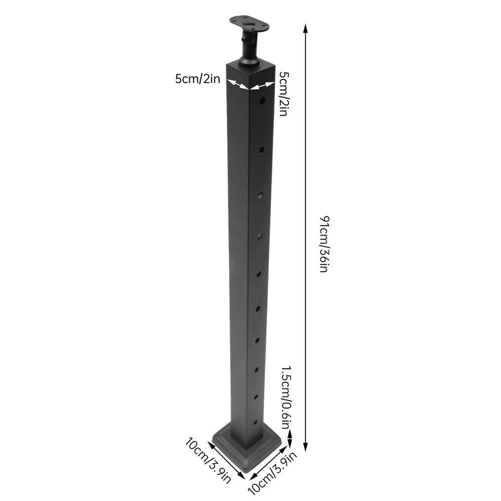 Specification Material: 304 Stainless Steel Process: Welding, Brushing, Polishing, Baking Color: Black Shape: Square Item Form: Rod Style: Two-sided Hole Drilling Angle: 30° Number of Holes: 10 Applicable Staircase Angle: 25~35° Maximum Load: 100kg/220.46lbs Cable Spacing: 7.6cm/3in Assembly Required: Yes Gross Weight: 2kg/ 4.41 lbs Net Weight: 1.7kg/ 3.75 lbs Product Size: 91*5*5cm/ 36*2*2in Wall Thickness: 1.2mm/0.05in Base Size: 10*10*1.5cm/ 3.9*3.9*0.6in Package Size: 100*10*10cm/39.37*3.94*3.94in Package Included 1 * Cable Railing Post 2 * Top Holder Brackets (Horizontal Bracket + Curved Bracket) All Accessories for Installation Cable Railing Post Stainless Steel Stair Handrail Deck Railing Kit DIY 36"x2"x2" Description Building a railing helps to protect the safety of pedestrians and objects in open venues. This cable railing post is made of high-quality 304 stainless steel and undergoes multiple surface care processes, providing excellent corrosion and rust resistance . It is ideal for you to use whether indoors or outdoors, or even in wet areas such as the seaside. It will be a handy helper to protect your safety! Key Features High-quality Material: This product is made of high-quality 304 stainless steel material, with wear resistance , high hardness, strong pressure resistance , and long service life. Fashionable Appearance: The classic black color, unique T-shaped design, and exquisite lines can make the product add a sense of fashion and space to outdoor or indoor spaces, and it can fit in with any kind of decoration style. Fine Craftsmanship: This product adopts multiple processes such as welding, brushing, polishing, and baking paint, featuring anti-corrosion , rust-proof , waterproof , and moisture-proof properties. You can even use it in saline or seaside. Easy to Clean: The smooth surface and simple structure make it easy to clean. You only need to use a wet/dry rag to wipe it gently. High Stability: The sturdy thickened wall (0.05in), fine welding process, and enlarged rectangular base (3.9*3.9*0.6in) make this product able to withstand up to 220 lbs and have high stability. Easy to Install: This product is screwed to the floor or base plate without the use of welding technology. So you can do the installation independently without the help of professional decorators. Open View: This product will be matched with wire ropes or round bars to form a railing with a clear and unobstructed view. Good Customer Service: Communication is the best way to solve problems. If you encounter any problem after purchase, please contact us in time before opening or unpacking the box. We will do our best to solve the problem for you. Details Decorative Cover: The decorative cover helps to hide the screws and make the appearance more beautiful. Top Holder Brackets: The movable horizontal bracket and curved bracket allow more flexibility in adapting to the angle of the square or round pipes to be installed and result in a stronger and tighter installation. Application It can be used as structural end posts and intermediate posts on stairs from 25 to 35 degrees. It is ideal for indoor and outdoor applications such as decks, stairs, porches, balconies, seaside or wet areas. Specification Material: 304 Stainless Steel Process: Welding, Brushing, Polishing, Baking Color: Black Shape: Square Item Form: Rod Style: Two-sided Hole Drilling Angle: 30° Number of Holes: 10 Applicable Staircase Angle: 25~35° Maximum Load: 100kg/220.46lbs Cable Spacing: 7.6cm/3in Assembly Required: Yes Gross Weight: 2kg/ 4.41 lbs Net Weight: 1.7kg/ 3.75 lbs Product Size: 91*5*5cm/ 36*2*2in Wall Thickness: 1.2mm/0.05in Base Size: 10*10*1.5cm/ 3.9*3.9*0.6in Package Size: 100*10*10cm/ 39.37 *3.94*3.94in Package Included 1 * Cable Railing Post 2 * Top Holder Brackets (Horizontal Bracket + Curved Bracket) All Accessories for Installation Notes The recommended column spacing between two columns is 3 ft-4 ft. Please consult your local office for building codes to avoid situations where some states might have special rules of their own, so please choose carefully to comply with them. Please allow the slight color difference caused by the shooting light and the 1-3 cm error due to manual measurement, and make sure you do not mind before ordering. Payment Delivery details Terms of sales About us Contact us Payment We accept ebay payment 。 Fees such as import duties, taxes are not included in the item price or shipping costs. These charges are the buyer's responsibility. Delivery details Shipping: 2-9 working days to: USA Terms of sales We maintain high standards of excellence and strive for hundred percent customer satisfaction. Feedback is very important to us. We hope that you contact us immediately before you give neutral or negative feedback, so that we can address your concerns. It is impossible to address issues if we do not know about them! About us Your satis faction is our ultimate goal. We work hard to earn your trust and future business. Our certified technicians have tested each item before shipping. The unit comes with 1 year limited warranty on all manufacturing defects. a) If you receive a defective item, you may return it or ask for a discount. Please contact us within 14 days after you receive the package. b) What you returned must be intact and in its original packaging as re? u. Customer is responsible for shipping costs of the returned item. c) We will cover the cost of shipping back t with the shipping rate indicated in the registration page. We will send you a new unit or refund the full payment you paid. Thank you. Contact us Business Hour Business Hour: Monday To Friday: 8:30 AM to 5:00 PM (Beijing China time) Due to time zones, our reply to your questions may not be immediately. But within above working time, we will reply your email within 24 hours. If it's non-workdays, please kindly be patient and wait till Monday. Please contact us with ebay message. Please feel free to contact us if you have an