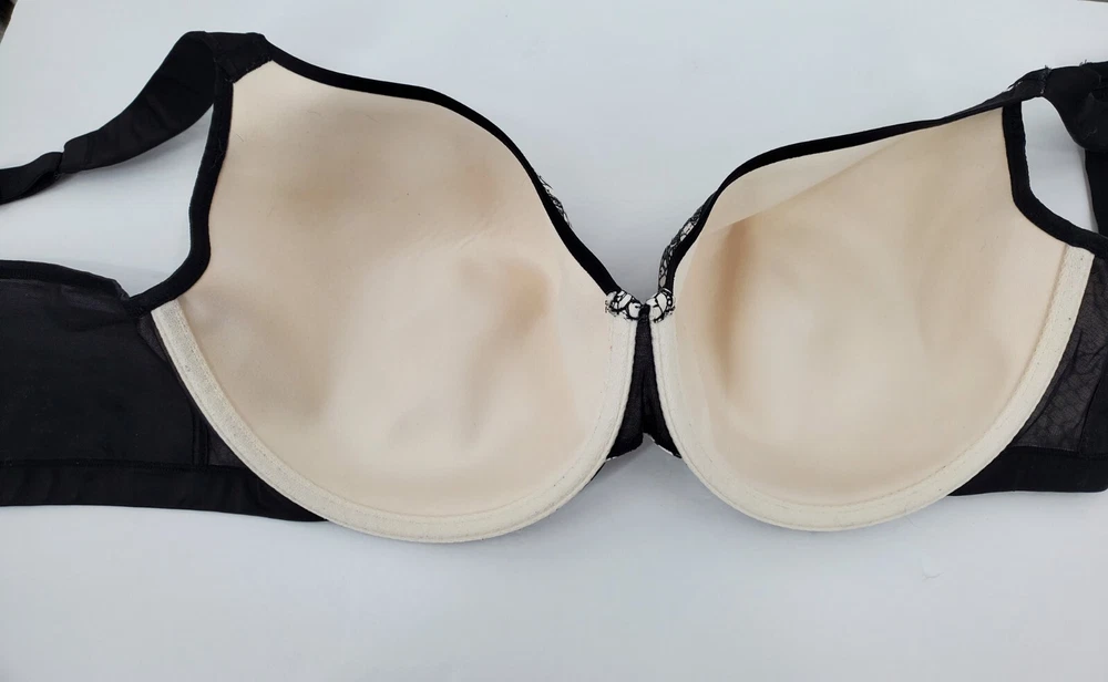 Cacique Lightly Padded Wireless Black & Beige Paisley Floral Print Size 46D Nice. The cups are lightly padded, with a black and beige floral paisley pattern and underwires.