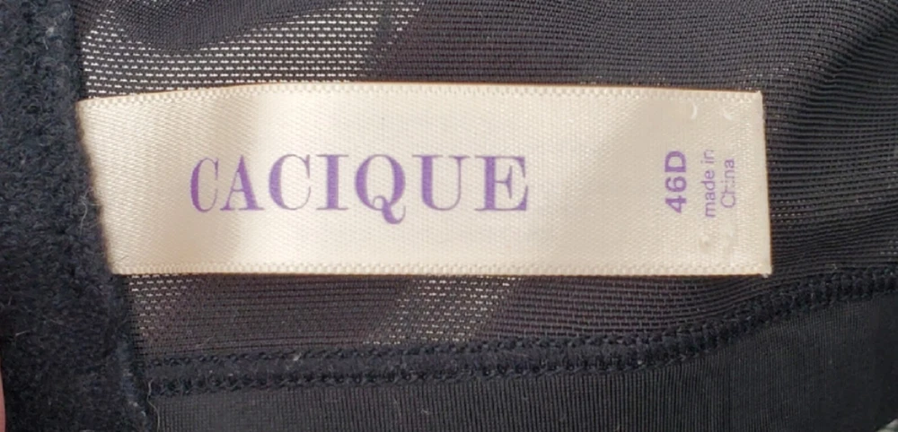 Product Line: Cacique Underwire Type: Underwired Closure: Hook & Eye Character: None Band Size: 46 Style: Comfort Performance/Activity: Any Performance/Activity Pattern: Paisley Occasion: Activewear Size Type: Plus Cup Size: D Color: Black Theme: Flower Strap Type: Normal Strap Support Level: Medium Size: 46D Department: Women Material: Polyester Fabric Type: Blended Fabric Type: Bra Features: Adjustable Strap, Lightly Padded Brand: Cacique