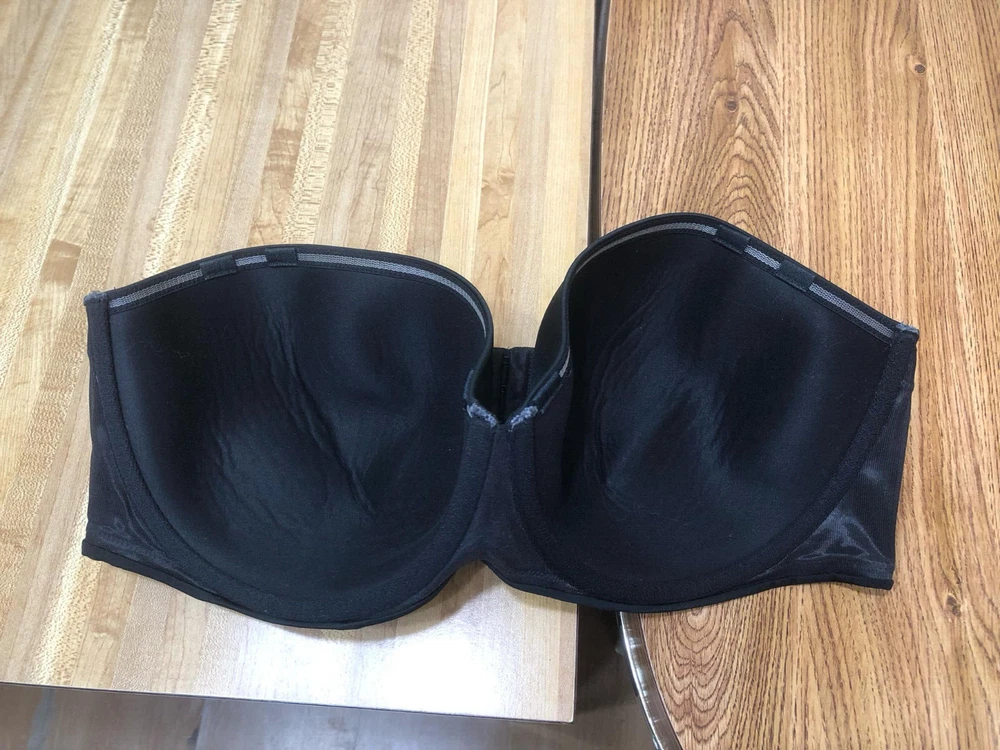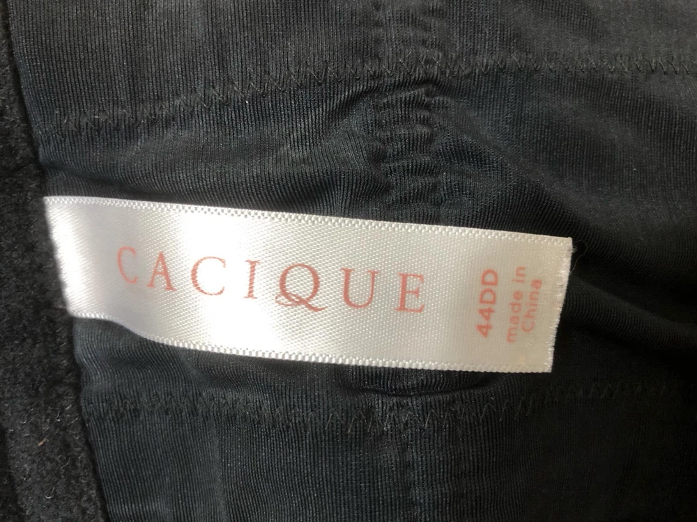 Welcome to Pim's clothing sales Nice condition bra. Solid black. Full cups. 3 position adjustable back strap. No shoulder straps included. Brand: Cacique Material: Nylon/spandex Size : 44DD tagged (Ask if you need more measurements) Please Remember all Clothing Items may fit differently depending on Brand, Fit, Use or Prior customization. We strongly urge our customers to check measurements first to guarantee proper fitting. Please be sure to check out our listings frequently for more high quality Designer Brand clothing items at a fraction of the price. We are getting new inventory all the time! You never know what amazing deals you may find :) Shipping discounts will be provided for multiple purchases - Please contact us after multiple purchases for an updated invoice.