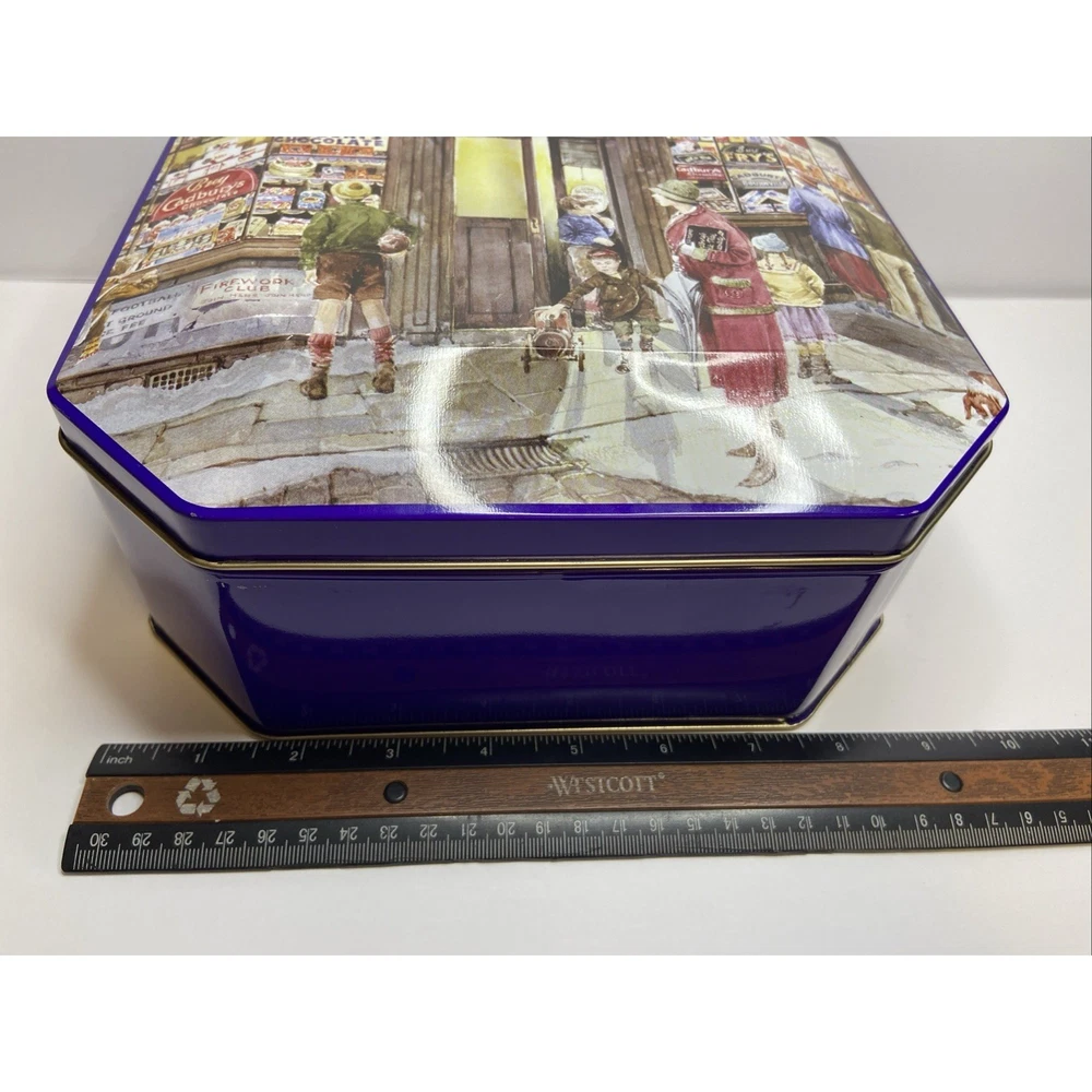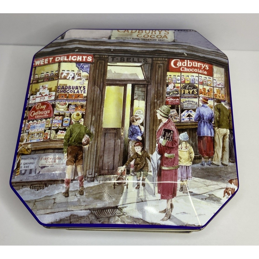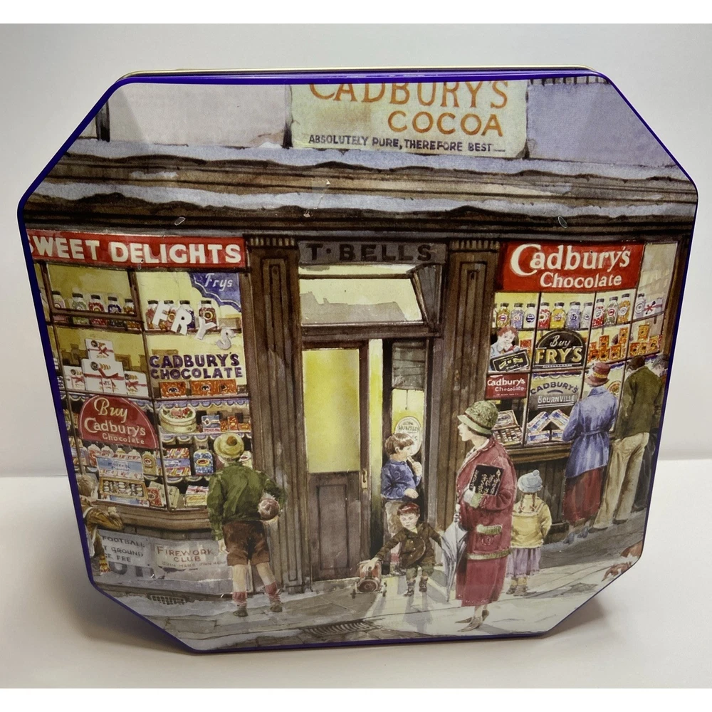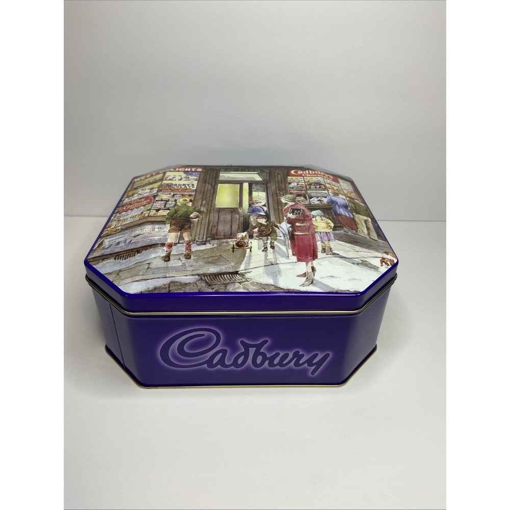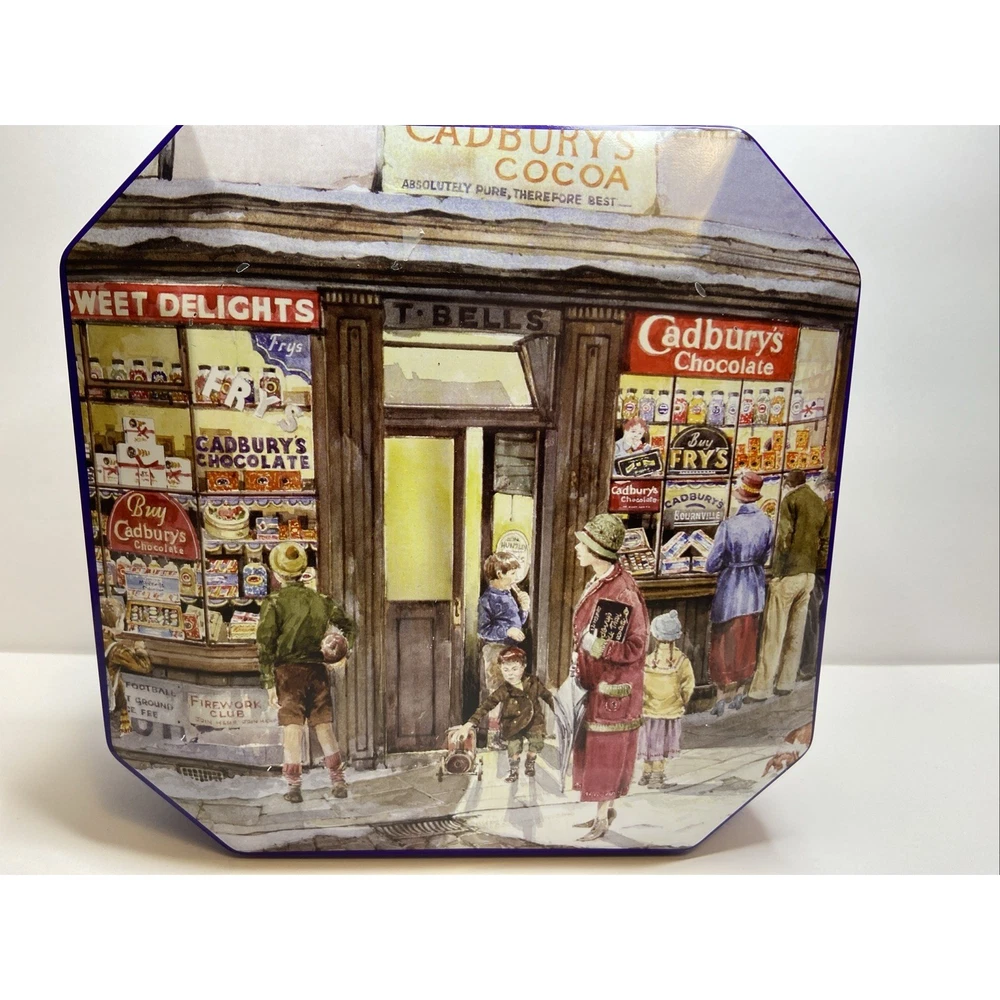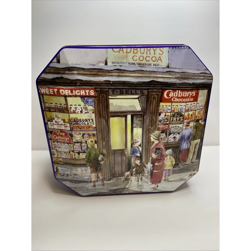 The Cadbury Tin Chocolate Holidays Christmas "Vintage Sweet Shop" is a festive and nostalgic collectible featuring a multi-color design. This tin, bearing the iconic Cadbury brand, is perfect for storing holiday treats or serving as a decorative piece during the Christmas season. With a charming vintage feel, this tin brings a touch of old-world sweetness to any space, making it a delightful addition to any collector's display.( Tin is empty)