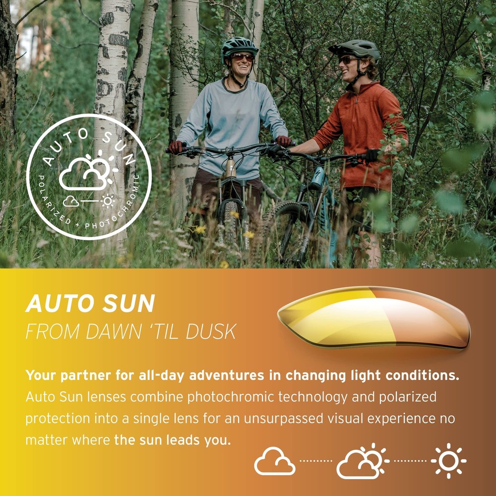 CADDIS: Caddis offers complete protection from the sun’s harsh rays with our plant-based Ellume Polarized lens and Z-Resin triple injected full wrap frame. POLARIZED + PHOTOCHROMIC LENSES: Auto Sun lenses combine photochromic technology and polarized protection into a single lens for an unsurpassed visual experience no matter what the day brings. This premium Japanese polarized lens blocks 100% UVA/B and 99.9% of all glare. Not all polarized lenses are created equal. is a proud part of the Maui Jim family. AUTOSUN LENS: Designed for days outside in changing light conditions, photochromic technology automatically adjusts from a low-light, bright yellow with a 28% Visual Light Transmission (VLT), to a high visibility persimmon with a 15% VLT for sunny conditions, while polarization protects and heightens color, definition, and detail. This premium Japanese polarized lens blocks 100% UVA/B and 99.9% of all glare. is a proud part of the Maui Jim family. SUSTAINABLE COMMITMENT: Our mission is to create sunglasses that enhance your time outdoors while working to protect the world around us. In our commitment to reduce our environmental impacts we use renewable and recycled materials in the manufacturing of all our sunglasses. PROFLEX RUBBER: This unique, porous rubber material is strategically injected into the temples and nose pads of the frame to provide a soft and comfortable hold that gets tackier as things warm up, keeping your glasses in place regardless of conditions or activities.