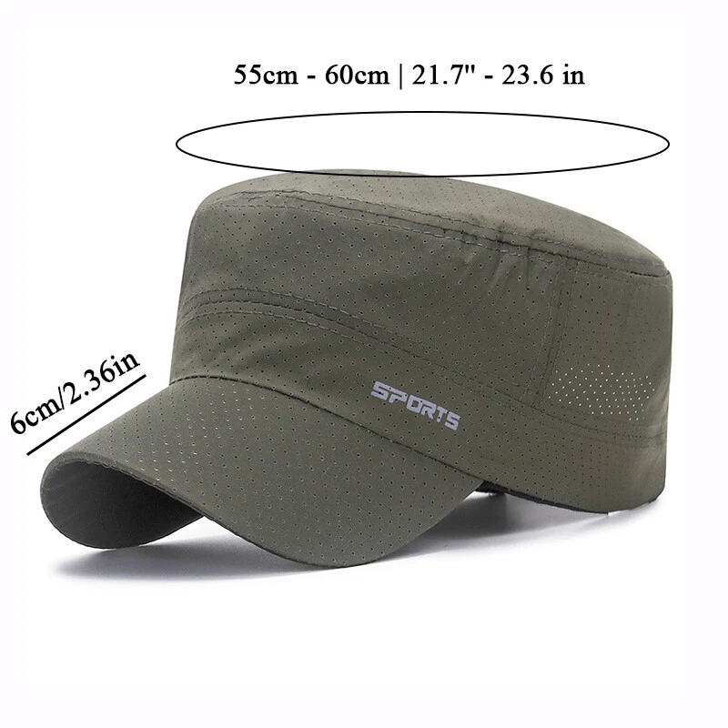 Cadet Hat Army Hats Flat Top Caps Military Cap Baseball Hat Classic Perforated Description: 100% Brand New and high quality. Features: Material:Polyester Color:As the picture shown Size:Suitable hat circumference: 55-60cm Brim: 6cm (1 inch =25.4mm or 1mm = 0.0393 inch) Package Includes: 1pc Hat Notice: 1. Please allow 2-3% error due to manual measurement. Please make sure you do not mind before you bid. 2. The colors may have different as the difference display, please understand.