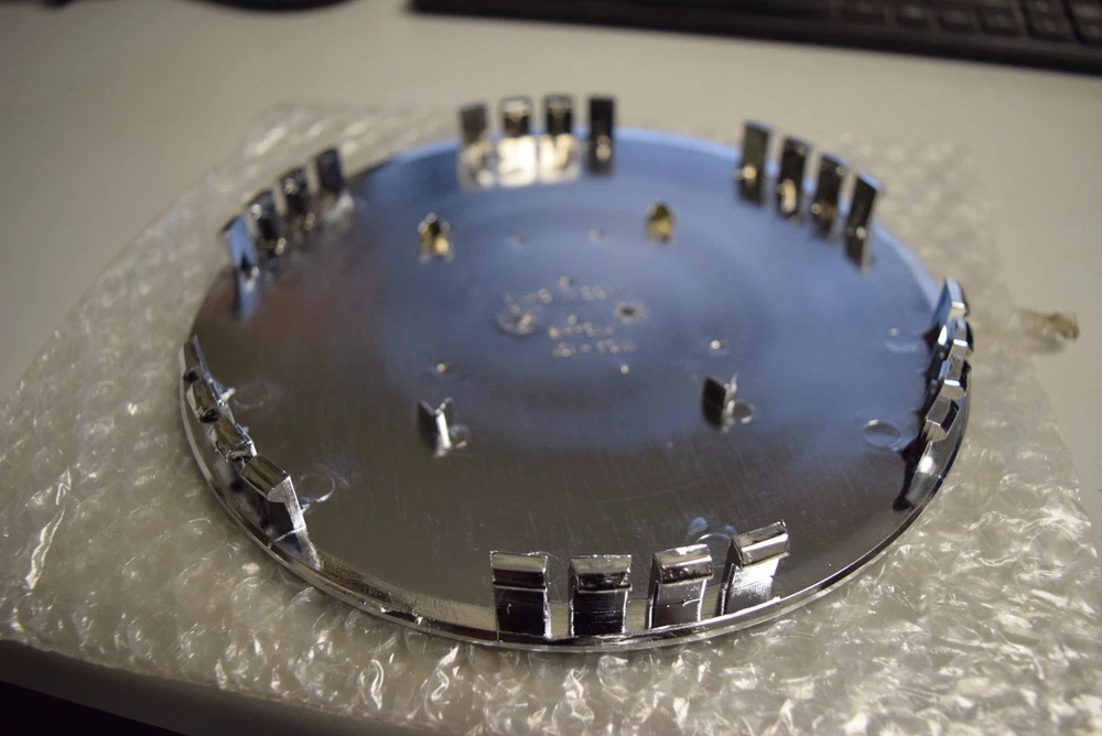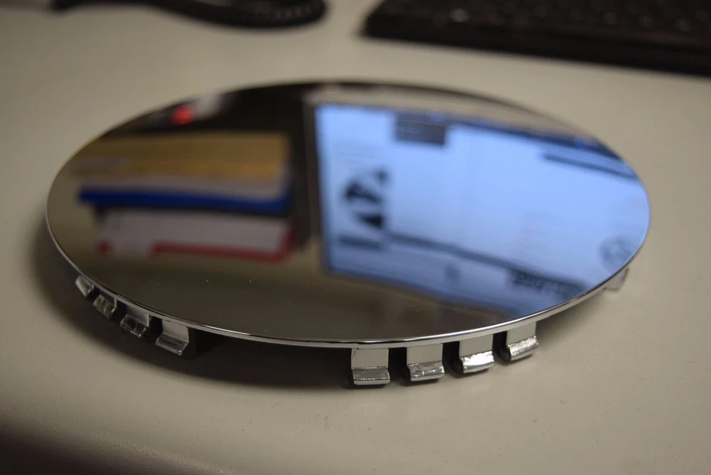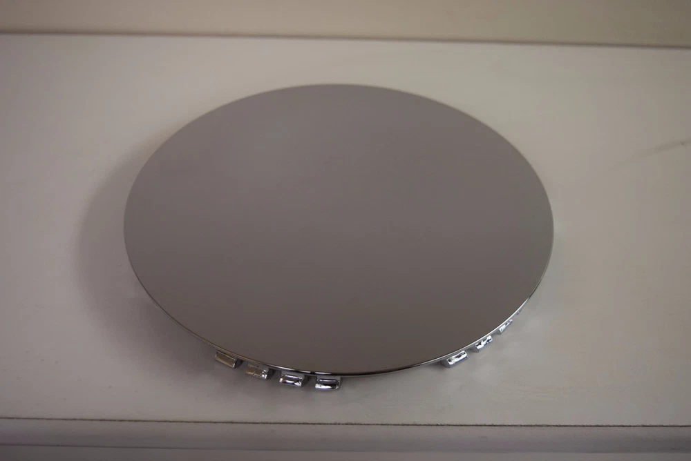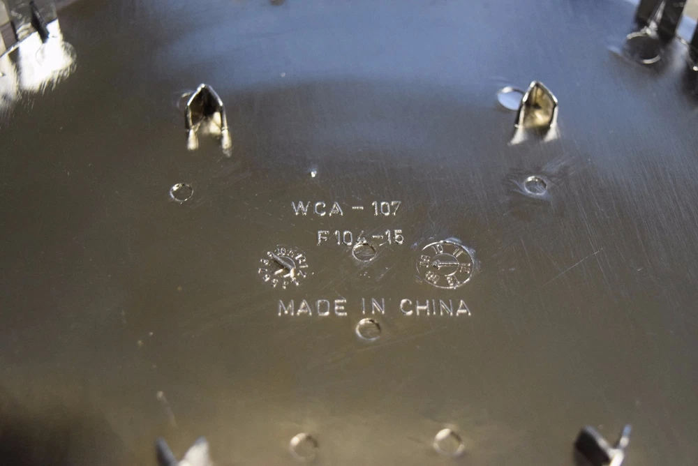 Set of 4 Cadillac Escalade OEM wheel center caps designed for 17-inch wheels. The center caps feature the Cadillac emblem and are made of aluminum and plastic. They have a 7-spoke alloy design and are compatible with various Cadillac Escalade models from 2002 to 2006. The manufacturer part number is 9593887 and the interchange part number is 4563.