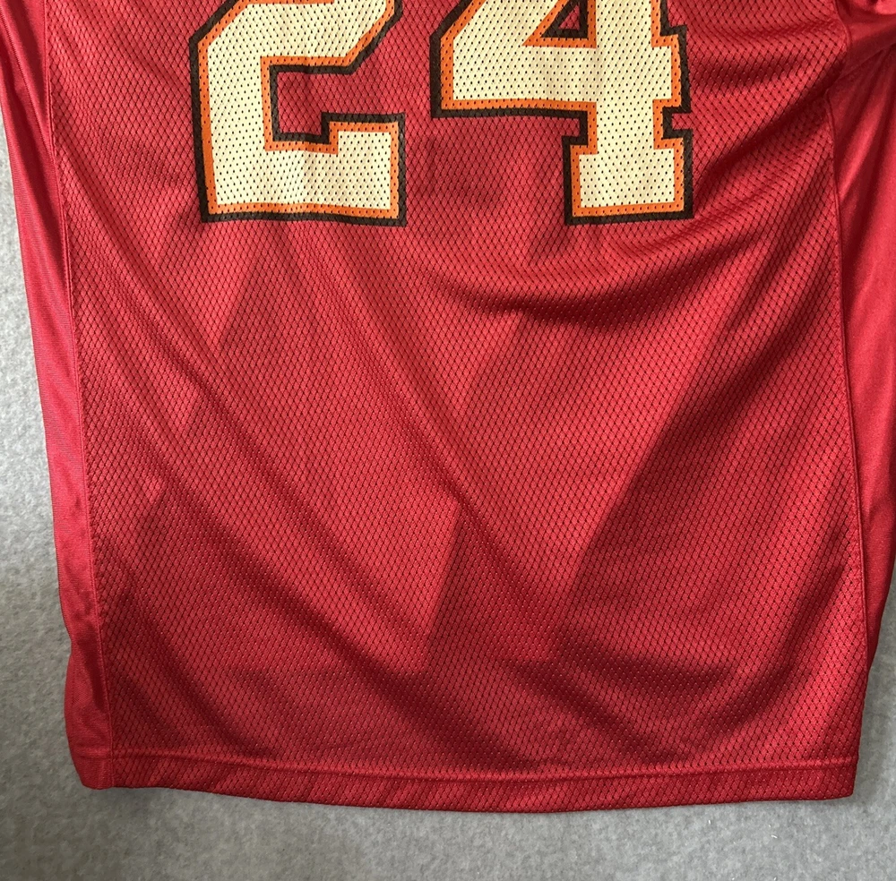 Show your support for the Tampa Bay Buccaneers with this officially licensed Cadillac Williams jersey. The red Reebok jersey features the number 24 and is perfect for any fan of the National Football League. Made for unisex adults, this size large jersey is ideal for those who want to show their love for the team during the regular season. The jersey is designed with the team's colors and features the player's name on the back. This product is perfect for anyone who wants to represent their favorite team. Get this Cadillac Williams Tampa Bay Buccaneers jersey today and show your support for the team during the game.