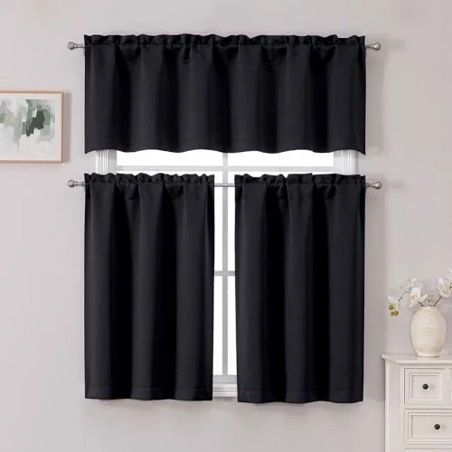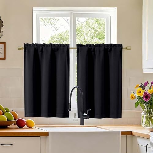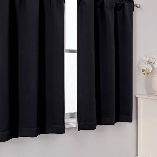 Cafe Curtains Tier 36 Inch Length 2 Panels Set, 30"W x 36"L (Pack of 2) Black