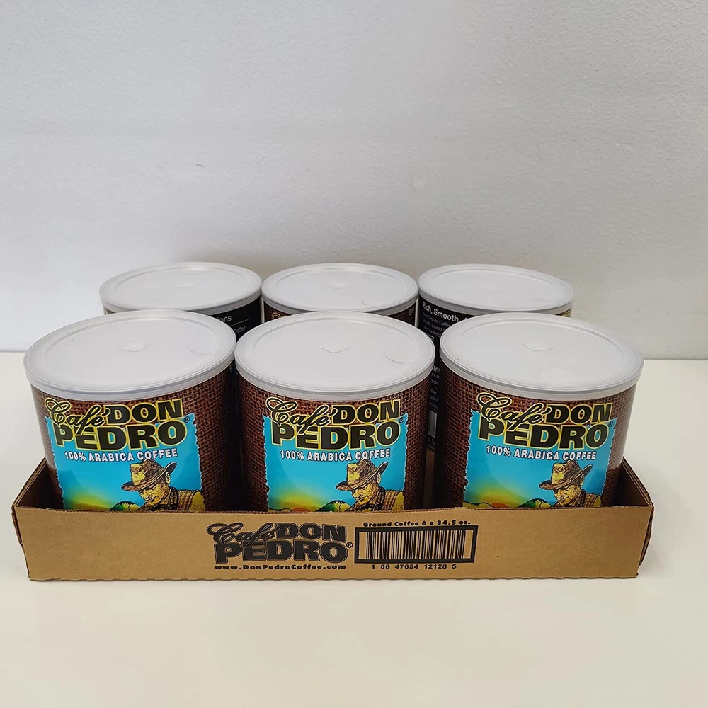 This is the large 34.5 oz can of Cafe Don Pedro American Roast Low Acid Coffee. American Roast is a medium roast, not too light, not too dark. Coffee's natural characteristics are preserved and there is a hint of caramel from the longer roasting time. Coffee without Heartburn? Typical industrial coffee has a pH level of 4.85 to 5.10, it may cause issues if you have a sensitive stomach. Cafe Don Pedro has a pH level much closer to water and like thousands of our customers, you may be able to keep enjoying high-quality coffee without suffering from acidic symptoms. How is Cafe Don Pedro Low Acid Coffee made? We select coffee beans that are naturally lower in acidity than others. But the most significant difference comes from the way we roast the coffee. Our traditional artisan roasting method gets rid of the chaff, the skin of the coffee bean. And that's great because it not only results in a smoother taste but also in low-acid coffee since the chaff is high in minerals, which contribute to the acidity of the coffee. There are no additional chemicals involved, no watering down the taste or affecting the caffeine level. It's all in our traditional natural methods and craftsmanship. What about the taste? Here is the best part: Cafe Don Pedro is delicious. Lower acidity results in a smooth cup of coffee. Don Pedro Coffee is made from selected beans resulting in balanced and smooth coffee without bitterness or acidity. Choose between 1 can 34.5 oz = 2.16 lbs 2 cans 69 oz = 4.31 lbs 6 cans 207 oz = 12.94 lbs