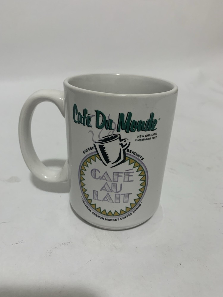 The "Cafe Du Monde Orig French Market New Orleans Louisiana Coffee Mug Cafe Au Lait" is a collectible coffee mug featuring a French-inspired design. With a multicolor exterior, this mug is perfect for enjoying hot beverages. The set includes a single coffee mug, suitable for all occasions and unisex adults. This iconic Cafe du Monde mug is a must-have for coffee lovers and collectors alike, showcasing the charm of New Orleans' French Market.
