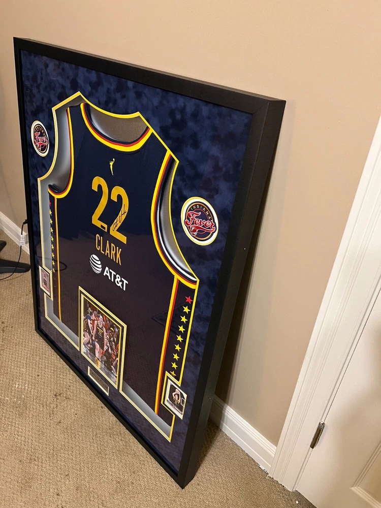 This autographed Indiana Fever jersey by Caitlin Clark is a must-have for any basketball fan. Featuring the iconic Nike brand and her name on the back, this jersey is perfect for showing your support for the team. Clark is a standout player in the Women's National Basketball Association (WNBA) and this jersey is a limited edition release from Panini. Made for the 2024 Explorer Edition, this navy jersey is a stylish addition to any collection. Whether you're a fan of the Indiana Fever or just a lover of basketball, this jersey is a great way to show your support for the sport. Add it to your collection today! I had this jersey custom framed with 2 rookie cards, small photo of Caitlin Clark, 2 patches, name plate and upgraded to museum glass. The museum glass protects from UV rays, cuts 85% of the glare and makes the glass more durable. This jersey also comes with a COA from Panini and it has a matching hologram on the jersey and the COA. I will pay for shipping and will insure for the full amount. I take PayPal only and will only ship to the lower 48 states. IF YOU HAVE ANY QUESTIONS OR NEED MORE PHOTOS LET ME KNOW. Thanks for looking.