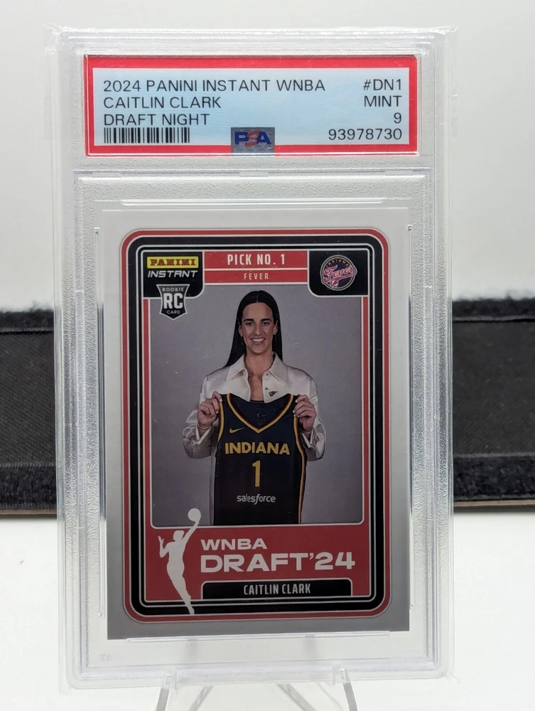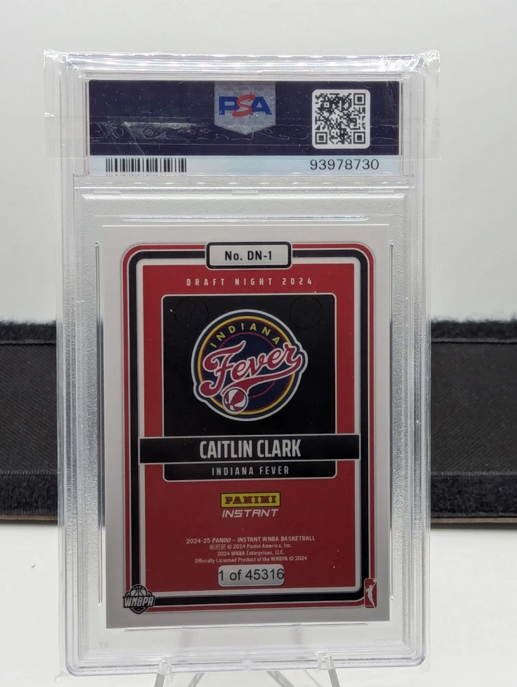 This rare and highly sought-after Caitlin Clark RC trading card is a must-have for any basketball fan and collector. Featuring the rising star of the Women's National Basketball Association (WNBA), this 2024 Panini card is part of the INSTANT collection and features a stunning draft night design. The card is certified with number 93978730 and has been professionally graded with a score of 275022. With its sleek and modern design, this sports trading card showcases the manufacturer's expertise and attention to detail. The card is a rookie card and features the player's name, league, and season. It is a valuable addition to any collection and is sure to impress. Don't miss your chance to own this rare card.