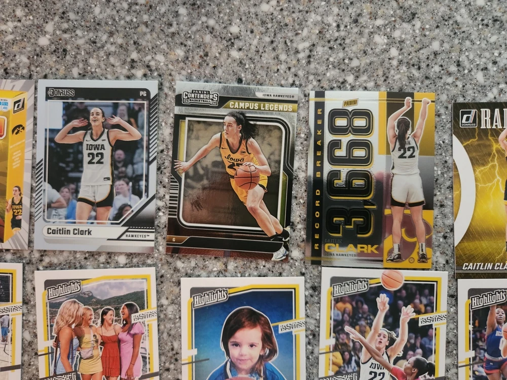 This is a 24 card lot of Caitlin Clark rookie year cards. Included in these 24 cards are 3 silver foil/chrome variations that can be seen in the pictures. Don't miss your chance to own this nice collection of cards that feature her on and off the court! The cards will be packaged well and shipped in a bubble mailer