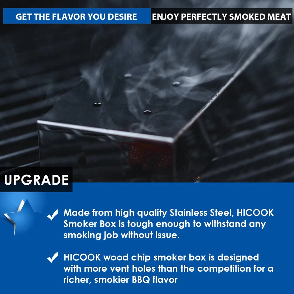 KEISSCO Stainless Steel Smoker Box For Gas Grill Wood Chips Are you having trouble getting that smokey barbecue flavor for your grilled meat? KEISSCO Smoker Box lets you infuse grilled food with smoky flavor and moisture. Simply place it under the grates of the grill, and watch as smoke and vapor emerge from its perforations, giving grilled food delicious, complex flavor. Fitting easily between the flame deflector bars of gas grills, it converts to a traditional smoker box so it can be placed directly on the grates. STEP 1: Insert your favorite flavor of wood chips. STEP 2: Position Smoker Box underneath the grill grates and above the burners. What to expect: * Made of durable stainless steel. * For gas and charcoal grills * Use over and over again * Large wood chip capacity * Can be filled with aromatic wood chips or fragrant herbs for various flavors. * Perfect for all grills - gas, charcoal, infrared, Weber, Char Broil, Char Griller, Big Green Egg. * Tough enough to withstand any smoking job without issue * Take your grilling to the next level, infuse your favorite meats with a perfectly intense smokey flavor every time * Dishwasher safe Package Contains1 Smoker Box WARNING: Smoker box will be hot on the grill! Only handle it with protective grilling mitts or meatl tongs. And chips or pellets are not included. Don't disappoint your palate! Simply click the "Add to Cart" button at the top right of this page to place your order now. PERFECT WOOD SMOKER BOX - Everything tastes better on the grill, add delicious smokey taste and smoked flavor to your meat with KEISSCO Smoker Box right now. GET THE FLAVOR YOU DESIRE - The smell of grilling and smoking can relax anyone after even the toughest days. Its about tasting the deliciously smoked meat and experiencing the freedom of grilling on the weekend. MORE VENTS - This wood chip smoker box is designed with more vent holes than the competition for a richer, smokier BBQ flavor, created from strong and heavy duty stainless steel, so the smoker box will hold up great under the heat of the grill. SWITCH WOOD CHIPS WITH EASE - The hinged lid on this smoker box makes it easy to switch your cherry wood chips for your pecan wood chips by simply dumping out the old chips and replacing them with the new ones. LARGE WOOD CHIPSCAPACITY - More wood means thicker smoke for your meat, with size of 8.8 x 3.6 x 1.7 inches, smoker box fits between flavorizer bars and grill grates or directly on top of charcoal.