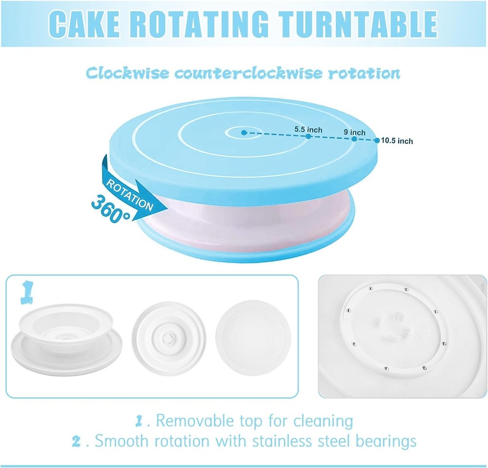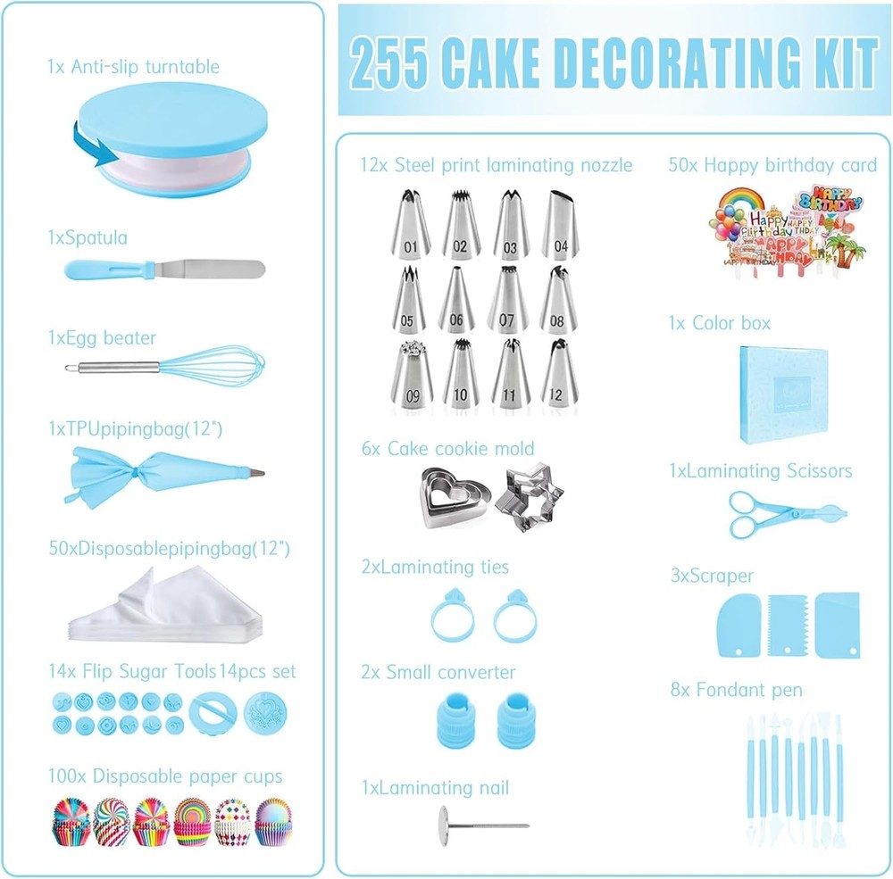 Free eBay listing template designed by dewiso.com Cake Decorating Supplies Kit Tools 255pcs, Cake Decorating Set with Cake Turntable, 12 Numbered Icing Piping Tips, Cookie Cutters, Icing Smoother & Other Accessories for Cake Decoration (Blue-255 PCS) FREE AND FAST SHIPPING! About this item Safe Materials: All accessories made of high quality 304 Stainless Steel, plastic and silicone; Sturdy safe for family cake making; Dishwasher Safety Cake Decorating Supplies Fondant Mold: 14pcs base mould that can print graphics and Patterns on cakes, diy cake, flexible combination, directly carved on the surface of the cake, use before baking supplies the cake Piping Bags and Tips Set: Includes 12 numbered icing piping tips, 50 disposable & 1 reusable 12” frosting pasty bags; Allow you to create a variety of designs, including simple dots and lines as well as intricate flowers and leaves; The included coupler makes changing tips on your piping bags a breeze without emptying the bag or creating any mess Revolving Cake Turntable: This cake turntable stand revolve smoothly with hidden ball bearings and helps you easily decorate cakes for birthdays, weddings and other events; It revolves clock & anti clock wise, good for both Right & Left handers; Use straight spatula for icing round cakes from sides and angled spatula from Top while rotating turntable Perfect for Various Occasions: With these baking accessories, you can create professional-looking cupcakes, cakes, bread, biscuits, and other desserts for different occasions, such as birthdays, weddings, Mother's Day, Christmas, Easter, housewarming, or anniversaries; Create beautiful and inviting desserts that will impress your guests at many event Product We offer a 30-Day Return Policy on items which you are not completely satisfied with. You have the option for a full-refund or an exchange of the item. No returns are available on items shipped outside of the US . Shipping We offer Free Shipping to the US and ship within 2 business days of payment, usually sooner. We use UPS express shipping. That's why your products are usually delivered within 3 days . Contact We try our very best to make sure every customer is completely satisfied. If there's a problem , message us! We're happy to help. 24/7 live chat available.