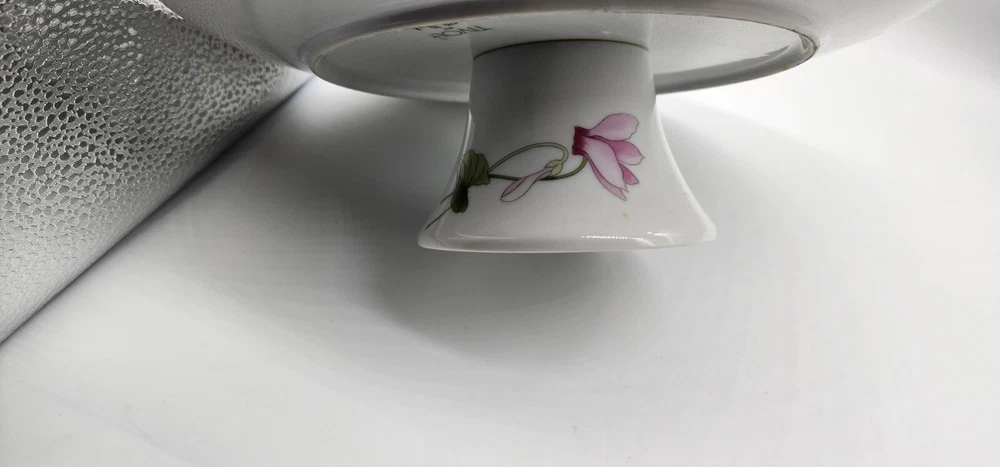 Material: Ceramic Theme: Cake Occasion: All Occasions UPC: Does not apply Type: Cake Stand gtin13: Does not apply Year Manufactured: 1996 Vintage: Yes Number of Items: 2 Brand: Sadek Color: Multicolor Item Diameter: 10" Pattern: Floral Country/Region of Manufacture: Japan Item Height: 3.25" Item Width: 10" Shape: Round