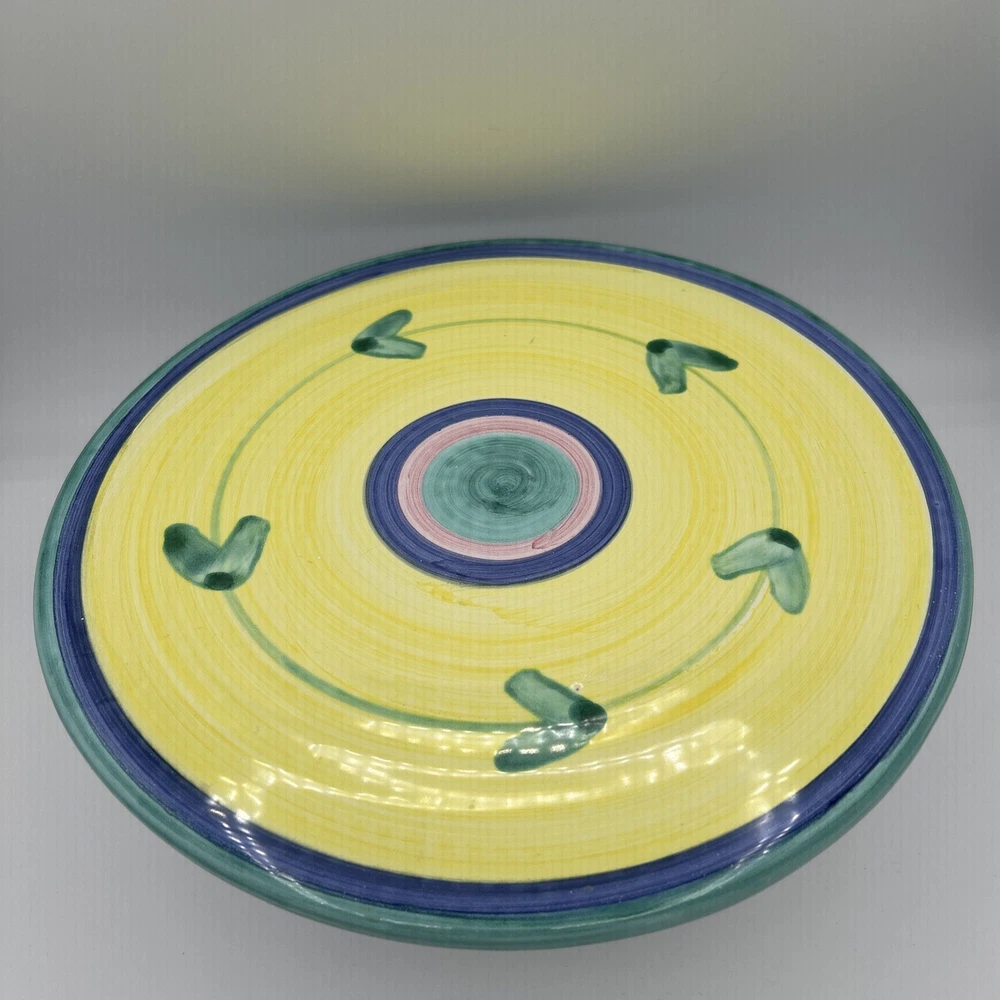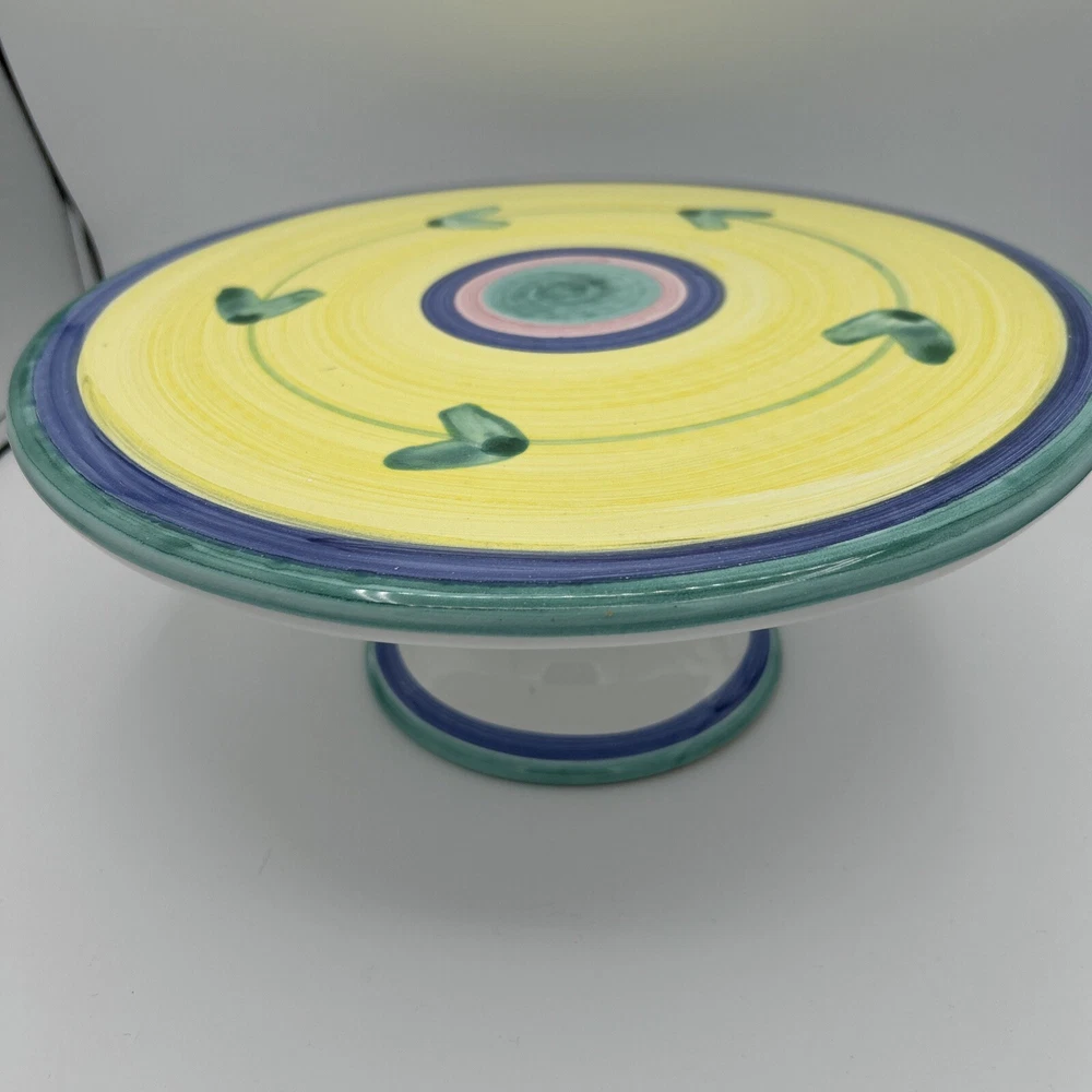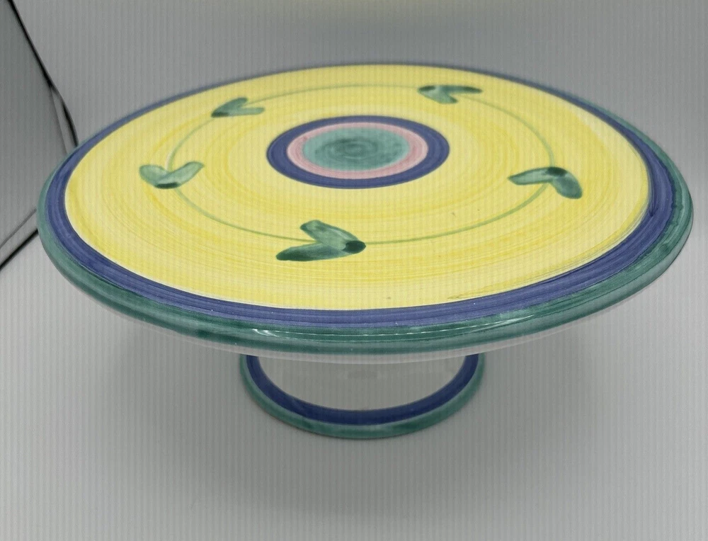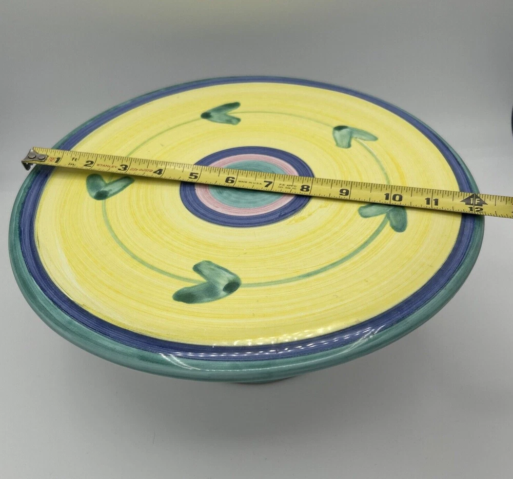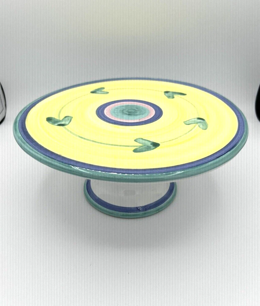Caleca Ceramic Yellow 12" Cake Plate Stand Made in Italy Handpainted