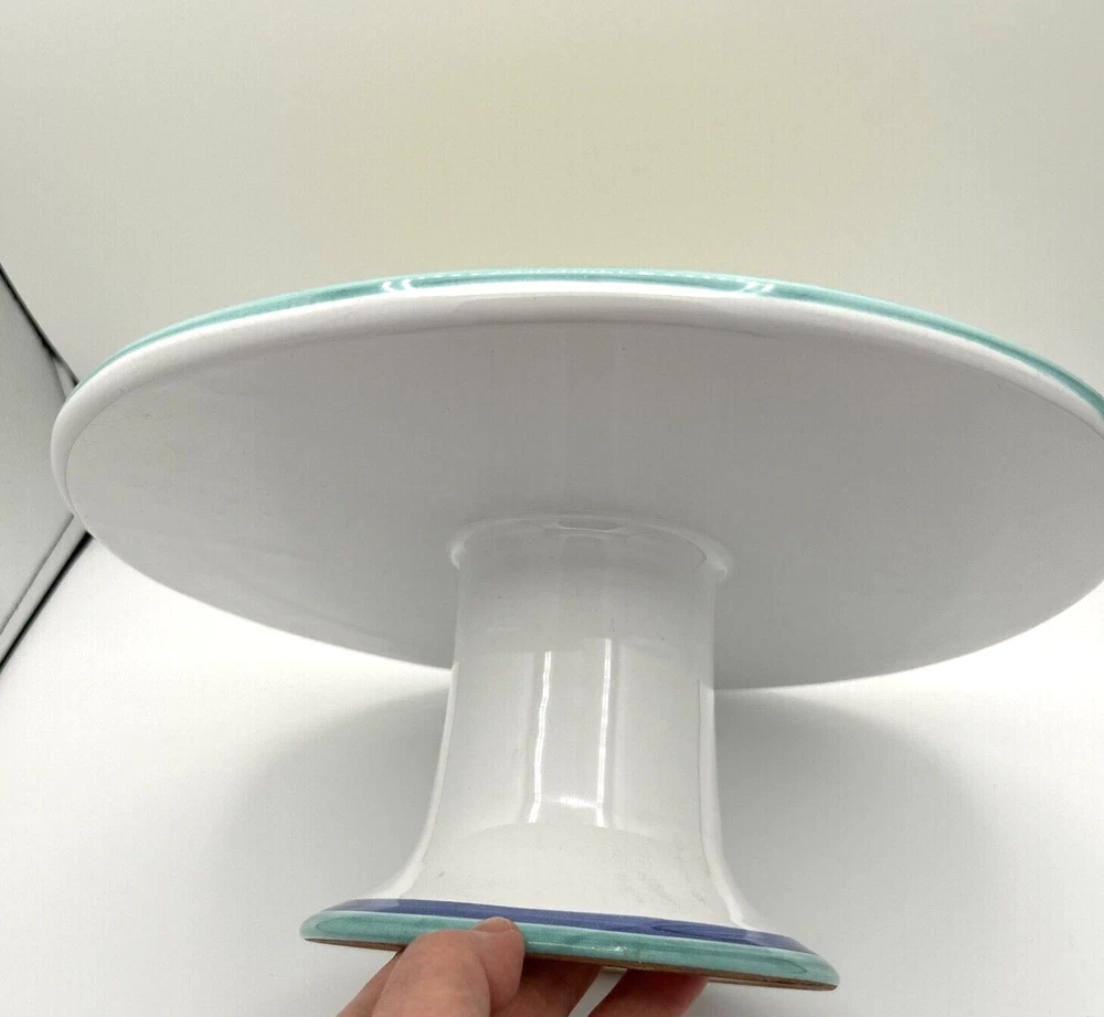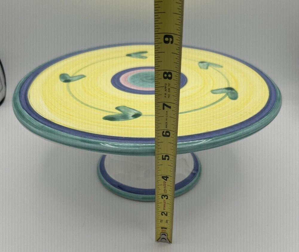 Number of Items: 1 Vintage: No Pattern: Leaf Production Style: Art Pottery Brand: Caleca Theme: Floral & Garden Finish: Glossy Antique: No Production Technique: Pottery Material: Ceramic Occasion: All Occasions Color: Yellow Type: Cake Stand Country/Region of Manufacture: Italy Seller Notes: “Excellent- no chips, cracks, glazing” Shape: Round
