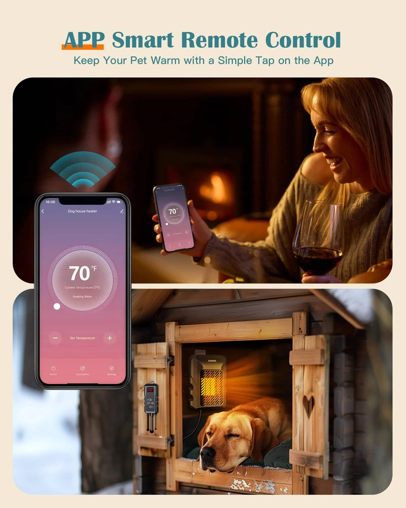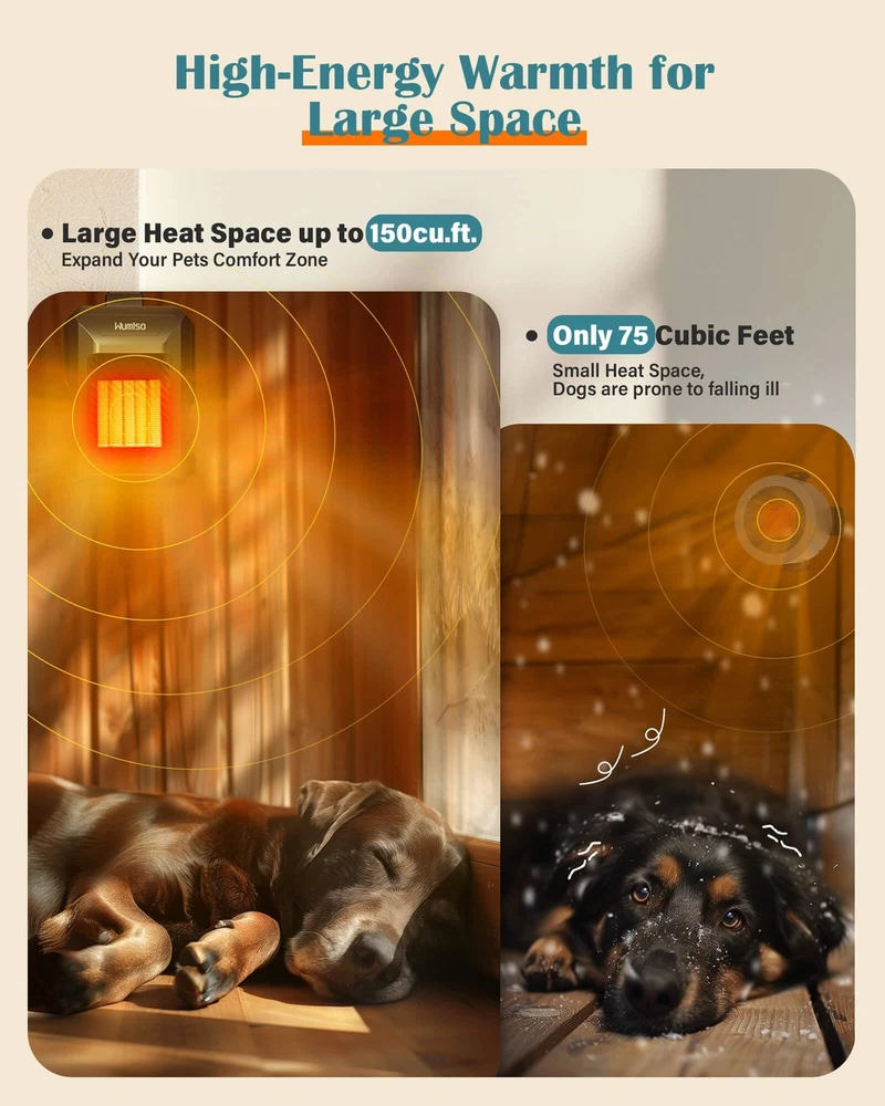 Dog House Heater, Dog House Heater with Thermostat APP WIFI Control, 500W Dog Ho App Remote Control: Our dog house heater with a thermostat allows you to remotely monitor the temperature inside the dog house anytime, anywhere, through the app, which is very convenient. In the cold winter, you no longer need to bend down to adjust the temperature outside the doghouse. You can easily take care of your pets and ensure they stay warm and healthy. You can also share the account with your family to jointly monitor and adjust the temperature of the dog house 500-Watt Rapid Heating: The 500-watt dog heater for outdoor dog houses heats up faster and performs better, covering a space of 150 cubic feet, far exceeding the 50-75 cubic feet of other products. Dog house heater with wifi control is an ideal choice for cold climate conditions, effectively preventing temperature drops and ensuring stable heating even in extreme weather. Compared to the common 300-watt pet heaters, it heats up faster and distributes heat more evenly Precise Temperature Control: Our newly upgraded dog house heater comes with a 6.5-foot long external temperature probe for precise temperature monitoring and even heating. Unlike traditional internal sensors, it directly senses the temperature of the dog house, ensuring accurate control to prevent overheating or undercooling, as well as preventing uneven temperature distribution within the dog house space. It provides your pets with a comfortable warmth on cold winter days Multipurpose Pet Heater: The most comfortable temperature for dogs is around 70°F; when the temperature drops below 50°F, pets will start to feel uncomfortable and cold. Our dog heater and ac combo has an adjustable temperature range from 41°F to 113°F, suitable not only for outdoor dog houses but also for chicken coops, rabbit cages, pet pigs, and barn cats, keeping them warm in harsh weather conditions. It is especially suitable for baby dogs, newborn pets, and senior dogs Energy Saving and Cost-Effective: The Wumlso pet house heater has a lifespan of over 10 years. Once the desired temperature is reached, it stops heating, and it will start heating again when the temperature drops 2 degrees Celsius below the set value. This smart ECO mode maximizes energy efficiency and reduces electricity bills, ensuring that your pets always enjoy a comfortable and warm environment Specification: Temperature Setting: 41℉-113℉| Time Setting: 0-24H | Power: 500W | Voltage:110-120V | 60Hz Shipping We offer FREE shipping on all orders! We ship within Three business days of payment, usually sooner. We use a selection of shipping services such as UPS, FedEx, USPS etc. We only ship to the lower 48 states, no APO/FPO addresses or PO Boxes allowed. Local pickups and combined shipping options are not provided at this time. Return You can return a product for up to 30 days from the date you purchased it. Any product you return must be in the same condition you received it and in the original packaging. Please keep the receipt. Payment We accept payment by any of the following methods: PayPal Please pay as soon as possible after winning an auction, as that will allow us to post your item to you sooner! Feedback Customer satisfaction is very important to us. If you have any problem with your order, please contact us and we will do our best to make you satisfied. Contact Us If you have any queries, please contact us via ebay. We usually respond within 24 hours on weekdays. Please visit our eBay store to check out other items for sale! Thank you for shopping at our store.