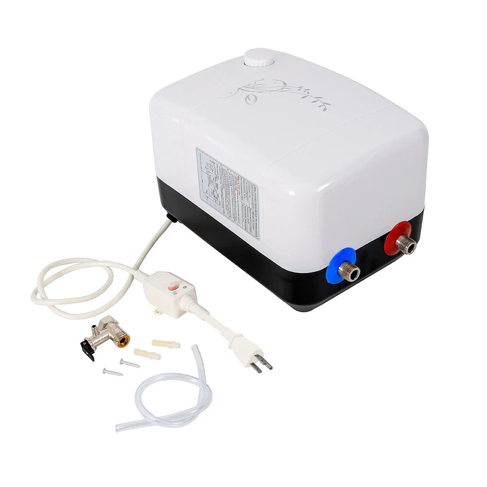 Hot Water Heater Home Bathroom Electric Tank Instant Boiler Kitchen Tankless 7L Feature Compact electric water heater, fashion white look. Instant hot water flowout, water temperature adjustable between: 30-75℃. 8L big capacity hot water heater. Provide warm water on winter to wash vegetable, dish and for tooth brush, face wash etc. Separated cold water inlet(blue), hot water outlet(red). Installed under wash basin. High Efficiency heating tube for less energy consumption. Premium stainless steel tank, anti-corrosion & high temperature resistant. IPX 4 Water-proof manufactured. Double protection: separated water & electricity and electricity guard device. Specifications Input: 110V Power: 1500W Water Tank Capacity: 8L Water Temperature Range: 30-75℃ Install Position: Under Basin Rated Water Pressure: 0.7Mpa Water-Proof Level: IPX4 Product Size: 9 x 8.4 x 14 inch / 23 x 21 x 36cm Weight:3.8kg Package Content 1 X Hot Water Heater Payment Delivery details Terms of sales About us Contact us Payment We accept ebay payment 。 Fees such as import duties, taxes are not included in the item price or shipping costs. These charges are the buyer's responsibility. Delivery details Shipping: 2-9 working days to: USA Terms of sales We maintain high standards of excellence and strive for hundred percent customer satisfaction. Feedback is very important to us. We hope that you contact us immediately before you give neutral or negative feedback, so that we can address your concerns. It is impossible to address issues if we do not know about them! About us Your satis faction is our ultimate goal. We work hard to earn your trust and future business. Our certified technicians have tested each item before shipping. The unit comes with 1 year limited warranty on all manufacturing defects. a) If you receive a defective item, you may return it or ask for a discount. Please contact us within 14 days after you receive the package. b) What you returned must be intact and in its original packaging as re? u. Customer is responsible for shipping costs of the returned item. c) We will cover the cost of shipping back t with the shipping rate indicated in the registration page. We will send you a new unit or refund the full payment you paid. Thank you. Contact us Business Hour Business Hour: Monday To Friday: 8:30 AM to 5:00 PM (Beijing China time) Due to time zones, our reply to your questions may not be immediately. But within above working time, we will reply your email within 24 hours. If it's non-workdays, please kindly be patient and wait till Monday. Please contact us with ebay message. Please feel free to contact us if you have any questions. Monday To Friday: 8:30 AM to 5:00 PM (Beijing China time) Due to time zones, our reply to your questions may not be immediately. But within above working time, we will reply your email within 24 hours. If it's non-workdays, please kindly be patient and wait till Monday. Please contact us with ebay message. Please feel free to contact us if you have any questions. Brand Unbranded Features Electric, Mini, Digital Display, Variable Temperature Mounting Location Indoor & Outdoor, Under Sink Power Source Corded Electric Voltage 110/120 V Heating System Storage Tank Type Tank Water Heater Color White Amperage 6.8 A Power 1500W Water Temperature Range 30℃-75℃ Water-Proof Level IPX4 Rated Water Pressure 0.7Mpa Water Tank Capacity 8L On Feb 13, 2025 at 20:12:14 PST, seller added the following information: