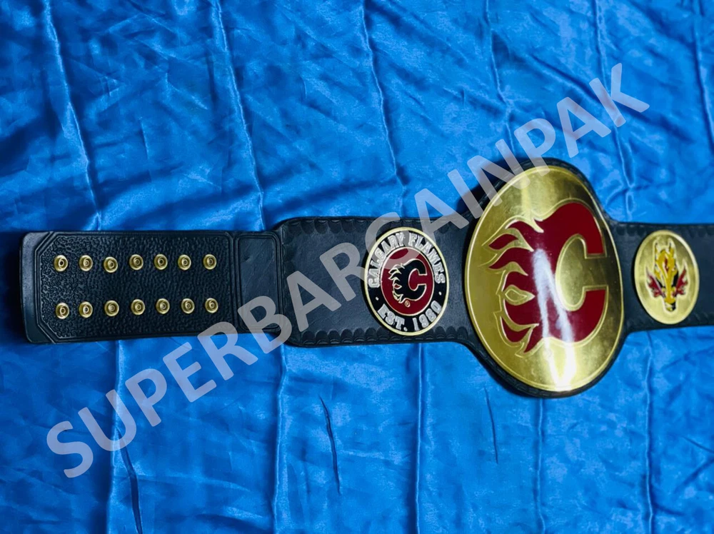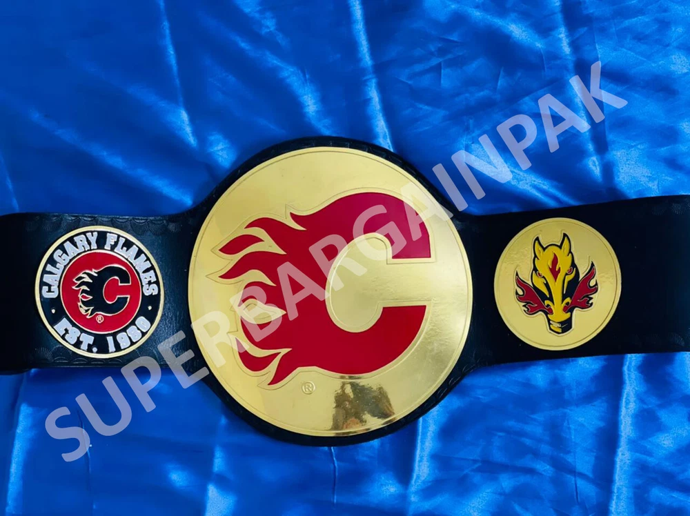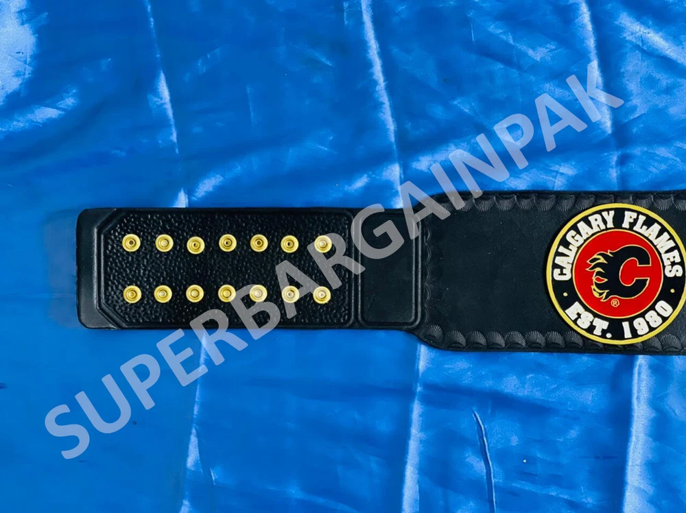 Welcome to our shop ------------------------------------------- We are specialist in manufacturing handmade products:: Our wide range of products include: >>>>Championship Belts WWE | WWF | AEW | UFC | WBC | WCW MINI SIZE ALSO AVAILAVLE FOR CHILD Product Description *** Calgary Flames Ice Hockey Championship Belt Adult size *** Plate Metal: Brass (Zinc available on request with additional cost) Strap: 100% Leather Largest Waist Size: Fits upto 46'' Belt Length: ~50" Weight: 6.17 lbs | 2.81 Kg Plate Thickness: 2mm (4mm Version available on demand with additional cost) ::The belt is well crafted and manufactured to meet the quality demands of fans:: Get your hands on this marvelous piece now! Note: If you need further details kindly inbox us, we will try to be as responsive as possible. ------------------------------------------- Return Policy: Generally we don't have much complains on our products and we make sure to 100% satisfy our clients. We send the product in well Bubble Wrapped packaging so there is highly unlike chance of getting damaged item. In case there is a damage, we will try to give partial refund or you can ask for full refund within 30 days after returning the belt to origin. NOTE: 1. If you have placed the order by mistake or you have purchased a wrong item then we are not going to refund that. 2. Buyer will pay the shipping fee of returning the belt. ------------------------------------------- Happy Shopping! :)