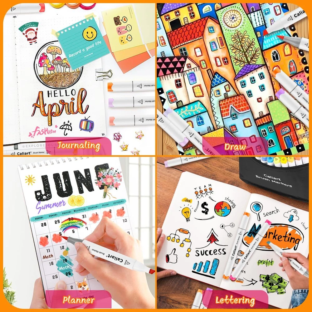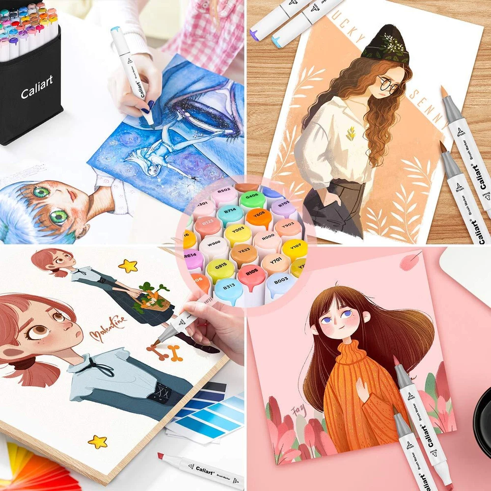 Caliart Alcohol Brush Markers, 51 Colors Dual Tip Artist Brush & Chisel Tip Sketch Art Alcohol Markers for Kids Adult Coloring Books Painting Drawing Illustration Artist Craft Card Making Supplies π¨ Brush & Chisel Double Tip Alcohol Art Markers. Each brush tip marker has a double-ended design, providing great versatility. You can choose the brush tip for sweeping, details, calligraphic strokes or the broad chisel tip for quickly color in large areas. Caliart alcohol brush markers are more durable and do not fray easily. π¨ 50 Vibrant Colors + 1 Free Colorless Blender. Valued artist markers for adults, kids coloring books, artist sketching, illustration, drawing, calligraphy lettering beginners, underlining, card making, architectural design, advertising rendering, landscape, and other forms of comic design etc. Great as Coloring Markers, Markers for Adult Coloring, art markers, sketch markers, drawing markers, permanent markers, alcohol based markers, alcohol markers brush tip, alcohol brush markers. π¨ Seamless Blending and Color Mixing. High-quality Japanese alcohol marker ink blends seamlessly to achieve beautiful coloring effects, excellent for both beginners and professionals. Smooth color mixing and blending, never worry about uneven, blotchy ink marks anymore. π¨ Alcohol Based Ink Markers. The highly pigmented and vibrant brush tip markers are built to last without worrying about smudges. Excellent smudge-proof and waterproof qualities on most surfaces, work well on paper, ceramics, plastic, rock etc. No fade with time. NOTE: as Alcohol Based Markers like ALL other brand alcohol markers, they will Bleed through regular coloring paper, except very thick paper, marker paper. π¨ Color-Coded Caps & Bonus Case: The color-coded caps allow for ease in organization and to identify colors quickly. Ergonomic design makes working with these brush marker pens easy for a long time. Equipped with a beautiful form-fitting black carrying case perfect for traveling and storing! Great gift for Christmas, Thanksgiving, art teachers, school students, families, friends, women, kids, girls. Feel totally free to contact us for a replacement if the original item has any defect.