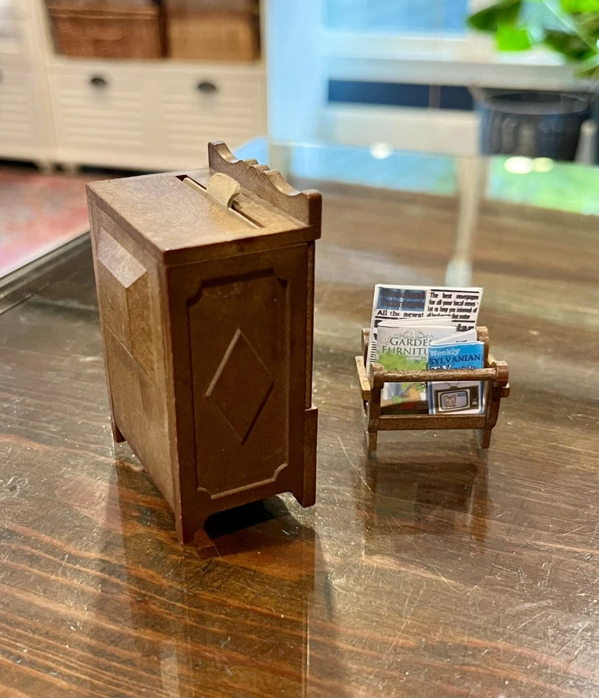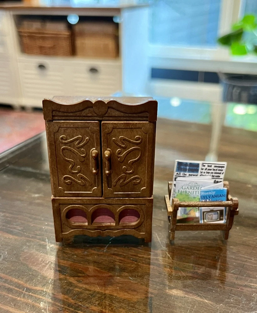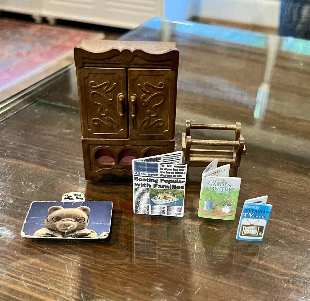 Beautiful vintage televsion with only one very worn slide. The books and newspaper in the magazine rack are copies on like paper. Please see photos. Smoke free home and will always combine shipping