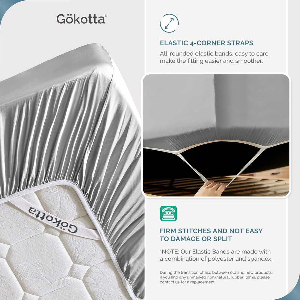 Store New Arrivals Add to Favorite View Feedback Contact California King Sheet Sets, 100% Tanboocel® Rayon Derived from Bamboo Sheets California King Size, Soft & Cooling Sheets,16” Pocket Sheets with Elastic Corner Straps, Moisture Wicking Description Item model number Bamboo Sheets Style Modern Pillowcase Width 30 Inches Weave Type Sateen Pattern Solid Country of Origin China Theme Solid Number of Pieces 4 Unit Count 4.0 Count Pillowcase Quantity 2 Material Rayon Age Range (Description) All Ages Seasons All, Summer, Spring Closure Type Envelope Item dimensions L x W x H 7 x 5.9 x 9.84 inches Item Weight 5.37 pounds Pillowcase Length 36 Inches Fitted Sheet Pocket Depth 16 Inches Special Feature Breathable Color 02 Grey Thread Count 300 Pillowcase Closure Depth 8 Inches Included Components Pillowcase * 2, Flat Sheet * 1, Fitted Sheet * 1 Pillowcase Closure Width 8 Inches Product Dimensions 7 x 5.9 x 9.84 inches Product Care Instructions Machine Wash Size California King 100% Bamboo Rayon Sheets with Premium Breathability: Gokotta 100% bamboo rayon california king size sheets, crafted from Tanboocel fibers and sourced from Canopy-certified factories, deliver outstanding softness and breathability for a cool, dry, and restful sleep. The tested sample demonstrated high breathability (recorded 73.9 CFM). For more details, please refer to the report on this page. Please note that there may be slight differences between the tested sample and the actual product Pilling Resistance for Lasting Comfort and Durability: Gokotta california king sheet set are crafted using a premium sateen weave technique, which not only gives them a silky, smooth texture but also helps to reduce surface pilling. The fabric’s smooth surface may also help reduce static, which can contribute to making the sheets pet hair resistant, helping to prevent some pet hair buildup. Sample testing has shown notable resistance to pilling, reflecting our commitment to long-lasting durability and comfort. For more details, please refer to the report on this page Secure Fit with Latex-Free Elastic Corner Straps: Gokotta fitted sheets feature elastic corner straps and an all-around elastic band to ensure a snug, slip-free fit for uninterrupted sleep. The 16-inch deep pocket easily fits most mattresses, and the strong elastic makes tucking quick and effortless. Crafted with latex-free materials, these sheets are a safer choice for every member of your family Certified Safe Bedding for Your Peace of Mind: Gokotta cal king sheets set are OEKO-TEX STANDARD 100 certified (Certification Code: SH025 252721), meaning these cooling sheets meet rigorous testing for harmful substances to ensure they are safe on your skin. This globally recognized certification guarantees that our bedding is both skin-friendly and environmentally conscious, providing a healthier and more restful sleep experience for you and your loved ones 300 TC - Perfect Comfort at the Right Value: Gokotta 300 thread count bamboo rayon sheets cal king size are thoughtfully designed to deliver the ideal balance of softness, durability, and affordability. Offering premium comfort for restful nights and long-lasting quality for everyday use, these bed sheets are the smart choice for those seeking exceptional value without compromise. These sheets maintain their vibrant color and luxurious texture over time, even with regular washing, ensuring they are unlikely to fade or stiffen, making them perfect for long-term use and lasting comfort Eco-Conscious Packaging with FSC Certification: Gokotta bamboo rayon sheets are packaged in FSC-certified kraft paper boxes crafted from responsibly managed forests, supporting global conservation efforts. Designed to minimize plastic use, this thoughtfully created packaging combines practicality with refined details, making it suitable for any setting that values quality and sustainability. Choose Gokotta for premium comfort and a step towards a more sustainable future Reliable Customer Care Inspired by Thai Hospitality: Gokotta customer care team reflects Thailand’s renowned culture of hospitality, offering prompt and attentive support to help with your questions or concerns. We are committed to ensuring a smooth and pleasant shopping experience for all customers. Imported Product Description Deep Pocket Up to 16" GOKOTTA Experience Ultimate Comfort with GOKOTTA 100% Bamboo Rayon Sheets GOKOTTA Bamboo Rayon Sheets are Made from 100% bamboo rayon, without blending other fabrics, these sheets are highly breathable and cool to the touch, making them ideal for those with sensitive skin. The 300-thread count sateen weave provides a luxuriously silky feel , ensuring a truly restful night's sleep. 1 Sheets With Corner Straps 2 300 Thread Count 3 OEKO-TEX Certification 4 Ultra Soft Sheets 5 Size Chart Multi-color Real Shot Display 1 Multiple Color 2 Pillow Cases 3 Latex-free Elastic 4 Warm Tips ABOUT US We offer the best prices around on high quality products. Our E-store includes media such as books, movies, music and games while offering electronics, toys, sporting apparel, clothing, tools, general home, garden items and more. SHIPPING We are always working hard to ensure your package arrives as soon as possible. Please understand that some factors like weather, high postal traffic, and the performance of shipping companies are outside of our control. We offer free shipping to the lower 48 states and ship within 2 business days of payment, usually sooner. We do not accept P.O. Boxes. Please provide a physical address. For shipping outside of the continental USA, we only use eBay's Global Shipping Program.The item is shipped to KY and then sent to the rest of the world. International customers are responsible for all duties and taxes. Continue to check out in order to calculate costs for shipping the item to your country. Messages regarding eBay's Global Shipping Program MUST be directed at eBay EXCLUSIVELY. RETURNS We offer a 30-Day Return Polic