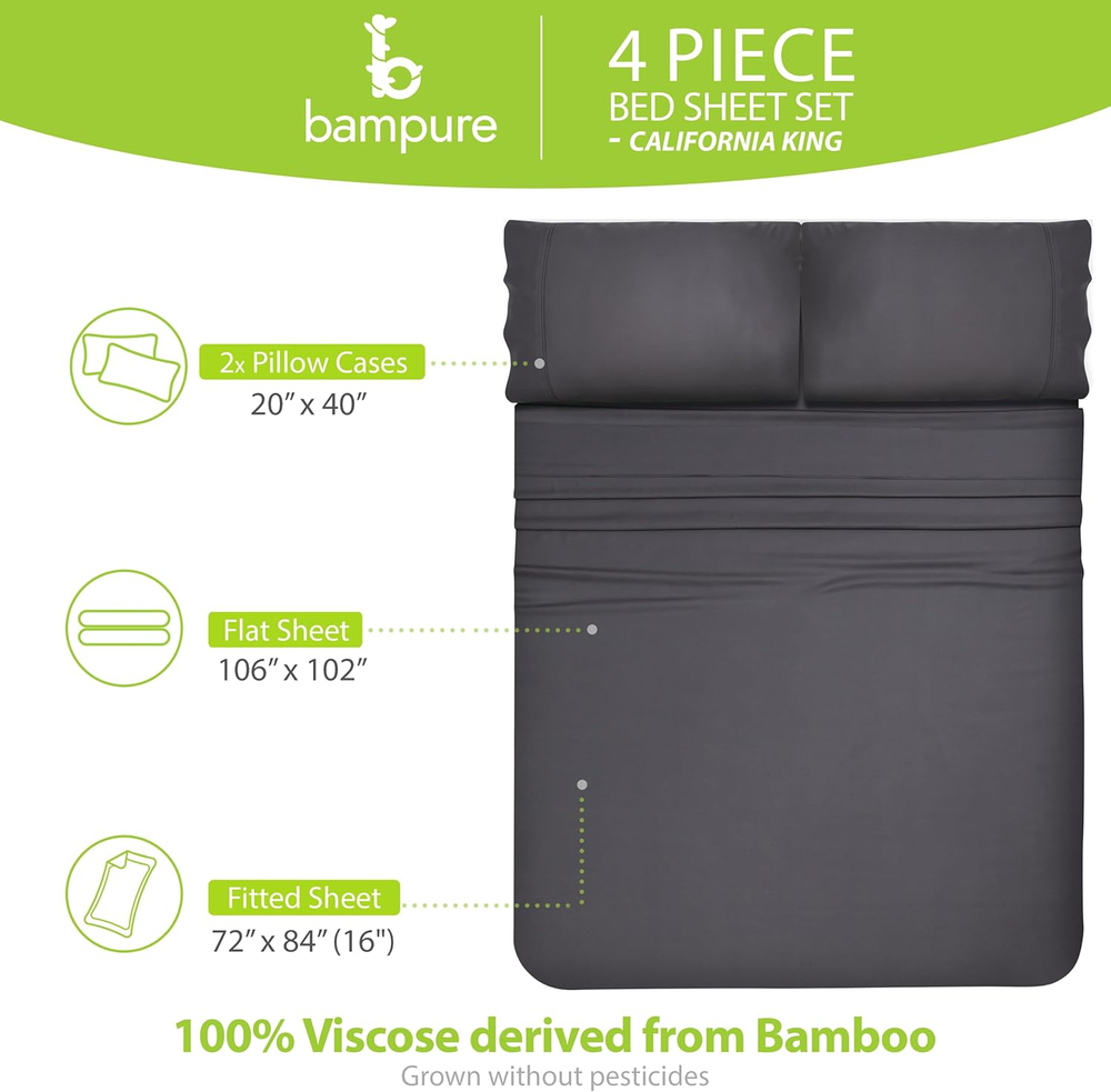 Store New Arrivals Add to Favorite View Feedback Contact California King Sheet Sets - 100% Pure Viscose Derived from Bamboo Sheets California King Size - Super Soft Viscose Cooling Sheets for Hot Sleepers - up to 16’’ Deep Pocket (C Gray) Description Item model number Bamboo Sheets California King Size Style Cal King Charcoal Grey Weave Type Sateen Pattern Solid Country of Origin China Theme Plants Cartoon Character 4 Number of Pieces 4 Unit Count 1 Count Pillowcase Quantity 2 Material Viscose Derived from Bamboo Item Display Dimensions 13.38 x 3.54 x 9.45 inches Age Range (Description) Adult Seasons All Is Discontinued By Manufacturer No Included Components 1 Fitted Sheet, 2 Pillowcases, 1 Flat Sheet Closure Type Envelope Item dimensions L x W x H 13.38 x 3.54 x 9.45 inches Item Weight 6.32 pounds Pillowcase Length 2E+1 Inches Fitted Sheet Pocket Depth 9.45 Inches Special Feature Wrinkle Resi Color Charcoal Gray Product Dimensions 13.38 x 3.54 x 9.45 inches Product Care Instructions Machine Wash Size California King - 4 Pieces Set Pure 100% VISCOSE DERIVED FROM BAMBOO: Experience the pure luxury of 100% viscose derived from bamboo california king sheet sets. COMPLETE 4-PIECE CALIFORNIA KING SHEETS: Experience a touch of luxury every night with our complete 4-piece california king bed sheets. This set includes 1 luxuriously soft flat sheet (106"x102"), 1 california king elasticized fitted sheet (72"x84") for a secure fit on mattresses up to 16 inches deep, and 2 envelope-style pillow cases (20"x40") with overlapping closures for added comfort. Our viscose from bamboo sheets cal king is machine washable for easy care and gets softer with every wash. ULTIMATE COOLING COMFORT & BREATHABLE BLISS: Experience the unparalleled softness and natural breathability of 100% viscose derived from bamboo california king sheets. These cooling bed sheets are thermo-regulating, keeping you cool and relaxed all night long, perfect for hot sleepers or those with sensitive skin. The moisture-wicking properties ensure year-round comfort, allowing you to indulge in luxurious softness with every wash. DEEP POCKETS ,SILKY SMOOTH SATEEN WEAVE: Woven in a luxurious sateen weave, these 100% viscose derived from bamboo sheets cal king size offer an incredibly soft and smooth feel that gets even softer with every wash. Indulge in hotel-like comfort every night. Our deep pocket california king sheet set features a fully elasticized fitted sheet with a deep pocket (fits mattresses up to 16 inches) for a secure, stay-put fit. OEKO-TEX STANDARD 100 CERTIFIED: Responsibly sourced and Crafted from 100% viscose derived from bamboo bed sheets, a sustainable resource. These OEKO-TEX sheets are free from harmful substances for a healthy sleep environment. Unlike most, our california king size bed sheets offer a luxurious, sustainable sleep experience you won't find anywhere else. Upgrade your sleep tonight! Product Description One Of A Kind Bamboo Sheets An average person spends around 26 years asleep in a lifetime. That reason only was enough of an inspiration for us to design our game- changing & luxurious Bampure bamboo bed sheets that will help you sleep like a baby every single night. Top Of The Line Experience Bampure bamboo bed sheet set has been carefully manufactured to bring you next level comfort. No more looking for a "cold spot" on your pillow, no more sweating at night, No more harmful synthetics - just pure relaxation. Corner Strap Included Every Bampure bamboo bed sheet set comes with a fitted sheet. Not just any fitted sheet - ours features corner straps that keep the fitted sheet in place at all times. Available In Multiple Colors Choose between a wide array of colors & decorate your bedroom like never before. 2 Pillowcases Every set comes with 2 envelope style pillowcases that not only look good, but also feel good. There's More To Bamboo Bed Sheets Than You'd Think Bampure bed sheets are as close to nature as it gets - they're crafted from 100% organic bamboo viscose. Bamboo sheets are also softer than any cotton sheets available. Combine all that with durability & breathability - it's a perfect recipe for a truly dreamy experience. Bring Nature To Your Bedroom Being in close touch with nature is beneficial in all areas of life. Then why wouldn't you bring it to the bedroom? The team at Bampure is here to provide our customers natural, organic & comfortable bedding. Discover our selection of nature-driven bedroom accessories! ABOUT US We offer the best prices around on high quality products. Our E-store includes media such as books, movies, music and games while offering electronics, toys, sporting apparel, clothing, tools, general home, garden items and more. SHIPPING We are always working hard to ensure your package arrives as soon as possible. Please understand that some factors like weather, high postal traffic, and the performance of shipping companies are outside of our control. We offer free shipping to the lower 48 states and ship within 2 business days of payment, usually sooner. We do not accept P.O. Boxes. Please provide a physical address. For shipping outside of the continental USA, we only use eBay's Global Shipping Program.The item is shipped to KY and then sent to the rest of the world. International customers are responsible for all duties and taxes. Continue to check out in order to calculate costs for shipping the item to your country. Messages regarding eBay's Global Shipping Program MUST be directed at eBay EXCLUSIVELY. RETURNS We offer a 30-Day Return Policy on items which you are not completely satisfied with. You have the option for a full-refund or an exchange of the item. No returns are available on items shipped outside of the USA. PAYMENT We accept PayPal. CONTACT US This page content is yet to come Please ad us to your favorite seller and visit again later Thank You CUSTOMER SATISFACTION We try our very best to make sure every customer is completely satisfied. If there's a p