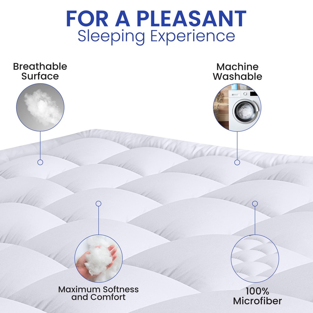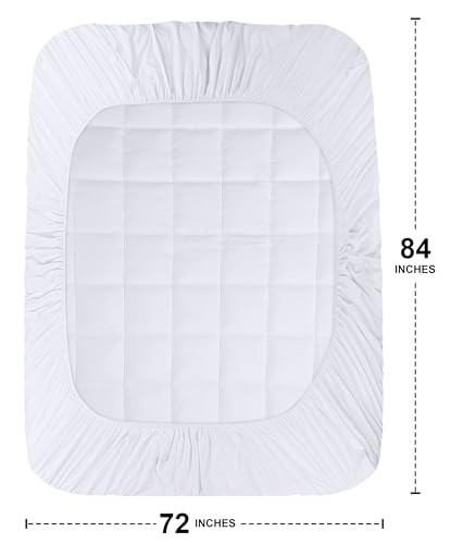 Pillow Top Mattress Topper: California King size mattress topper measures 72 inches by 84 inches with a 16-inch skirt which provides more cushion and support to your mattress and completely changes the firmness level by adding more softness. Please protect the cover from spills as it is not Waterproof. Fluffy & Soft Mattress Pad: The super-soft comfortable top layer of the mattress pad provides extra resilience and gives you a cozy & most relaxing sleep. Laying a pillow top on an existing mattress provides the feeling like sleeping on a cloud. Quilted Fitted Mattress Cover: This box-stitched quilted fitted pattern mattress cover adds an exquisite look and feel to your mattress, while the box stitched design prevents the filling to shift. Mattress Protector With Deep Pocket: The 360° elastic fitted deep fabric pocket can be easily stretched to fit mattresses up to 16 inches to hold tight on all mattress types providing the full protection. Care Instructions: This mattress cover is machine washable under a gentle cycle, and should be tumble dry with no heat. Please do not iron or bleach.