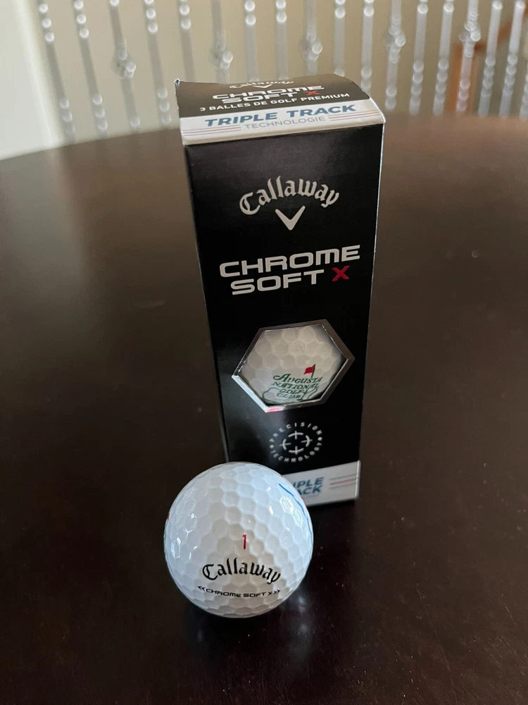 Sleeve of 3 Callaway Chrome Soft golf balls from the legendary Augusta National Golf Club. Features the ultra exclusive Augusta National Golf Club logo - not the Master's Tournament logo. Available ONLY in the Member's pro shop. 3 sleeves available. Brand new in box and ships free. The perfect gift for golfer! I have numbers 1, 2, and 4. All 3 balls in a sleeve will feature the same number. If you have a preferred number, please send me a message and I'll do my best to honor your request.