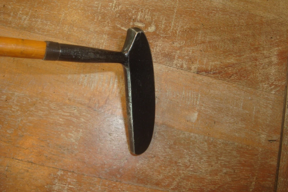 35" putter was bought new and used sparingly. Very, very good condition. Hickory shaft is in excellent shape. Grip however is poor. There is no head cover for this. Long term A/C storage.