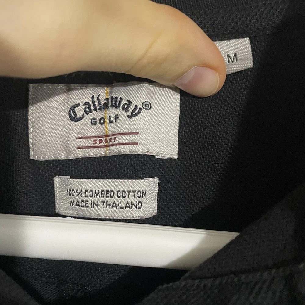 Occasion: Activewear, Casual, Travel Accents: Button, Embroidered, Logo Type: Polo Neckline: Collared Material: Cotton Country/Region of Manufacture: Thailand Brand: Callaway Performance/Activity: Golf Color: Black Closure: Button Season: Fall, Spring, Summer Size Type: Regular Product Line: Callaway Golf Size: M Theme: Sports Sleeve Length: Short Sleeve Department: Men Pattern: Solid Seller Notes: “Men's Medium”