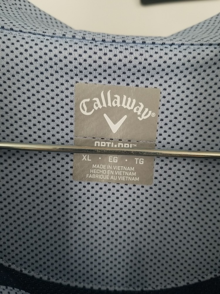 Season: Fall, Spring, Summer Vintage: No Model: CALLLAWAY OPTI-DRI Closure: Button Features: Breathable UPC: Does not apply gtin13: Does not apply Neckline: Collared Department: Men Fabric Type: Blended Fabric Accents: Logo Country/Region of Manufacture: Vietnam Material: Polyester, Elastane Product Line: Callaway Opti-Dri Pattern: Geometric Size: XL Fit: Classic Theme: Classic, Outdoor, Golf Sleeve Length: Short Sleeve Brand: Callaway Performance/Activity: Golf Type: Polo Fabric Wash: Medium Garment Care: Machine Washable Occasion: Activewear, Casual Graphic Print: No Collar Style: Spread Size Type: Regular Color: Blue