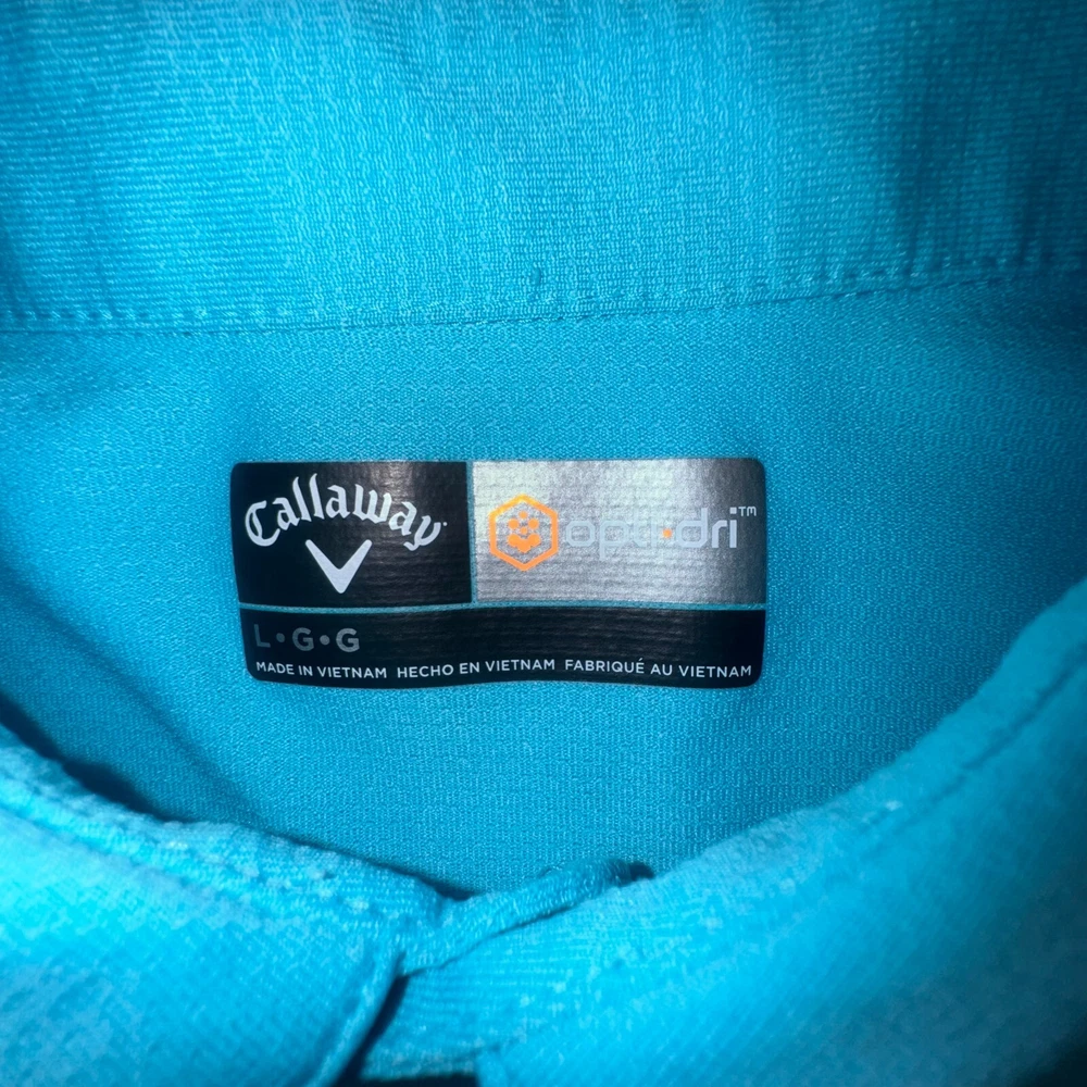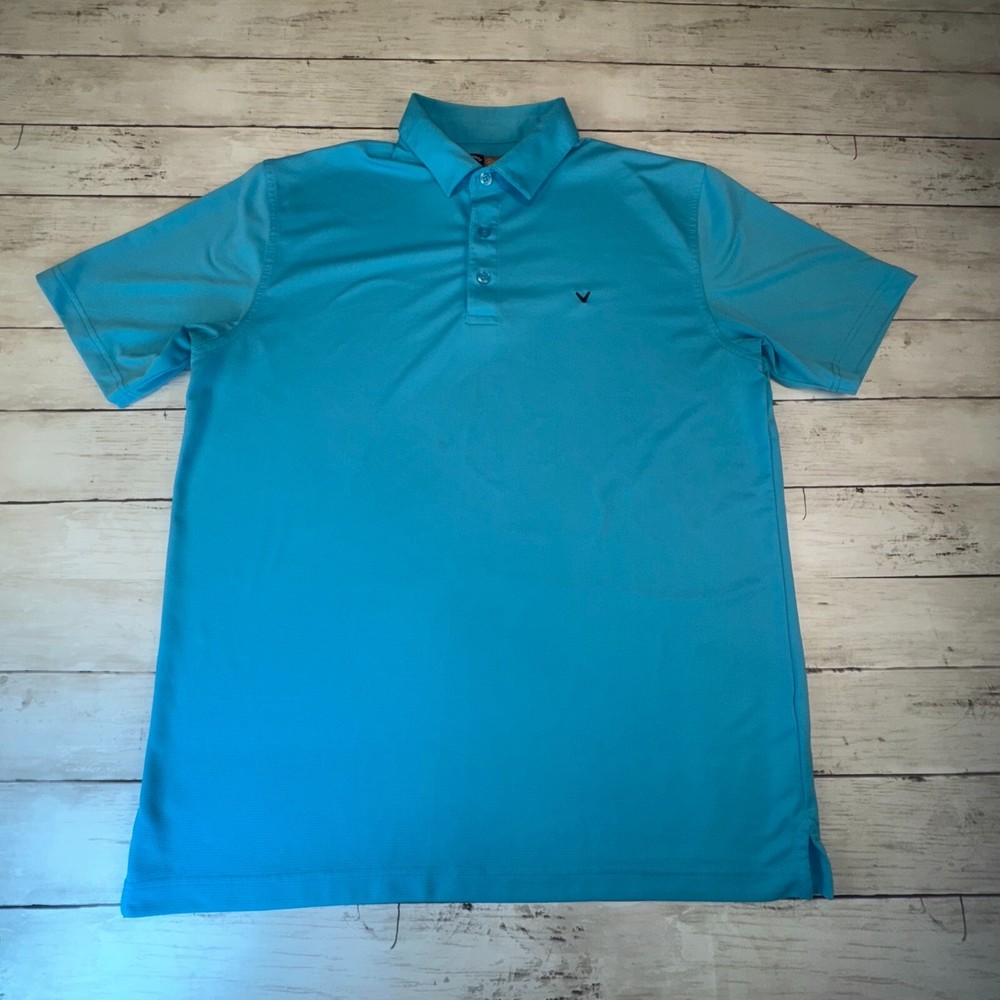 The Callaway Opti Dri Adult Mens L Aqua Blue Short Sleeve Polo Golf Shirt is a stylish and functional piece of clothing designed for outdoor activities, particularly golf. Made from a polyester blend material with a light fabric wash, this polo shirt offers comfort and breathability. The solid blue color and collared neckline add a touch of classic style, while the regular fit ensures a comfortable and flattering silhouette. With features like easy care, stretch, and all-season suitability, this polo shirt is perfect for both casual wear and sporty occasions.