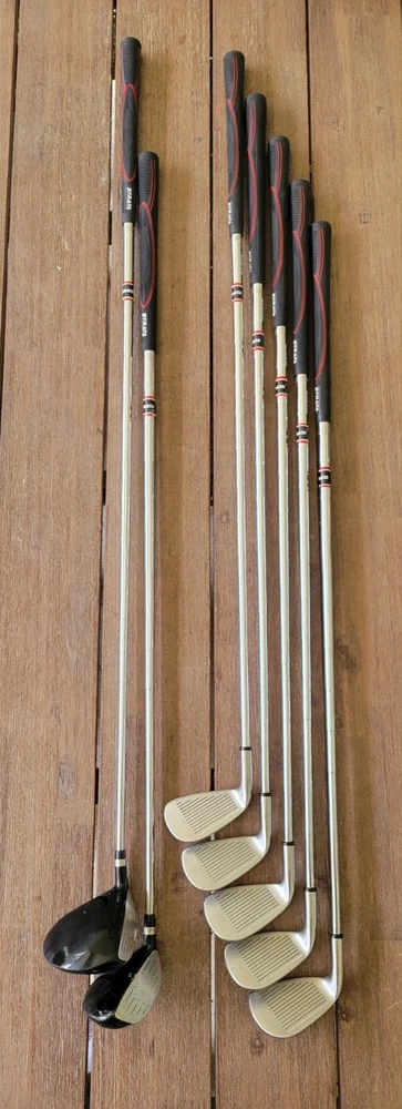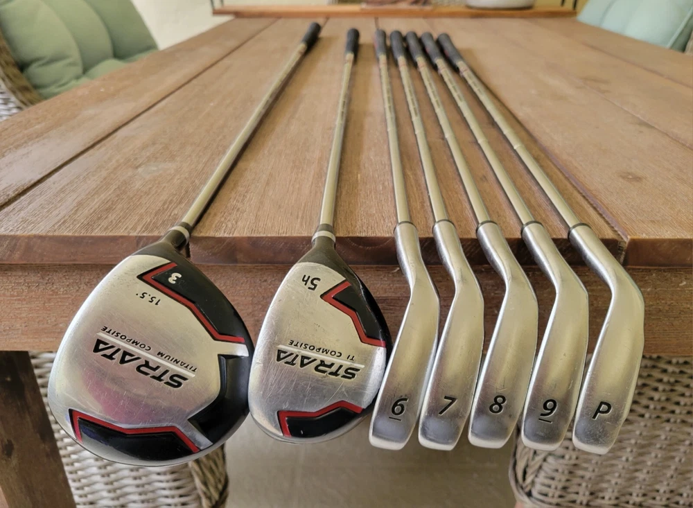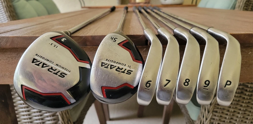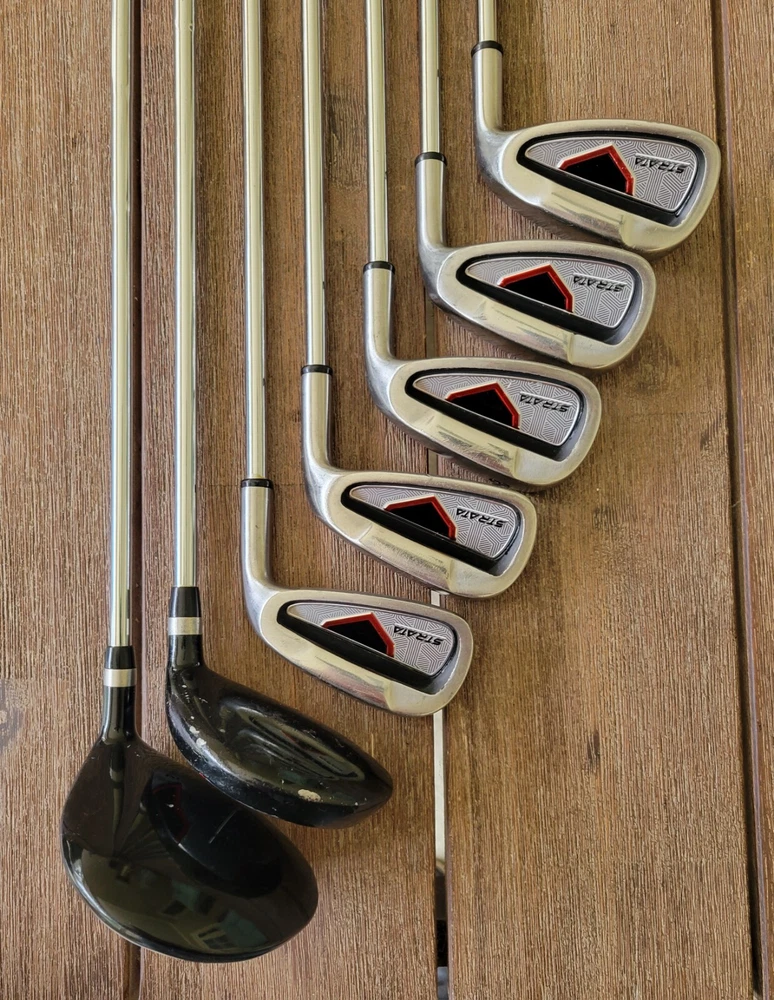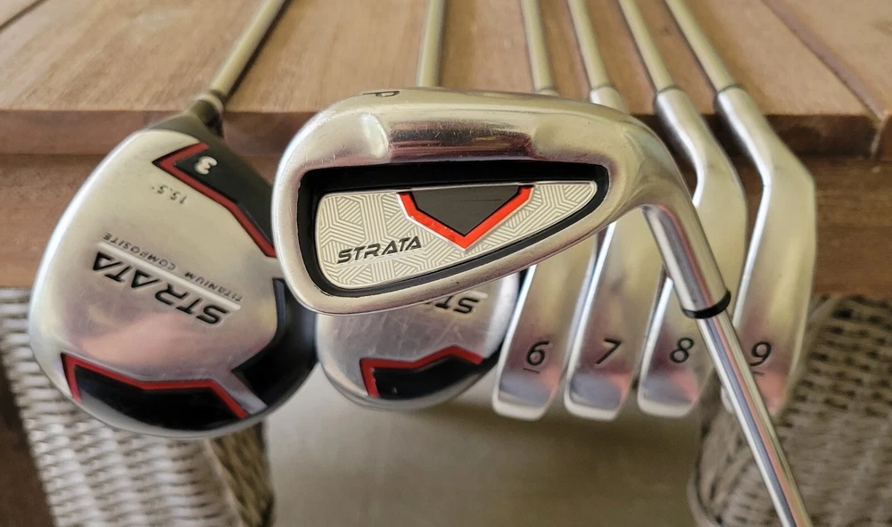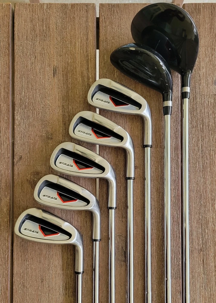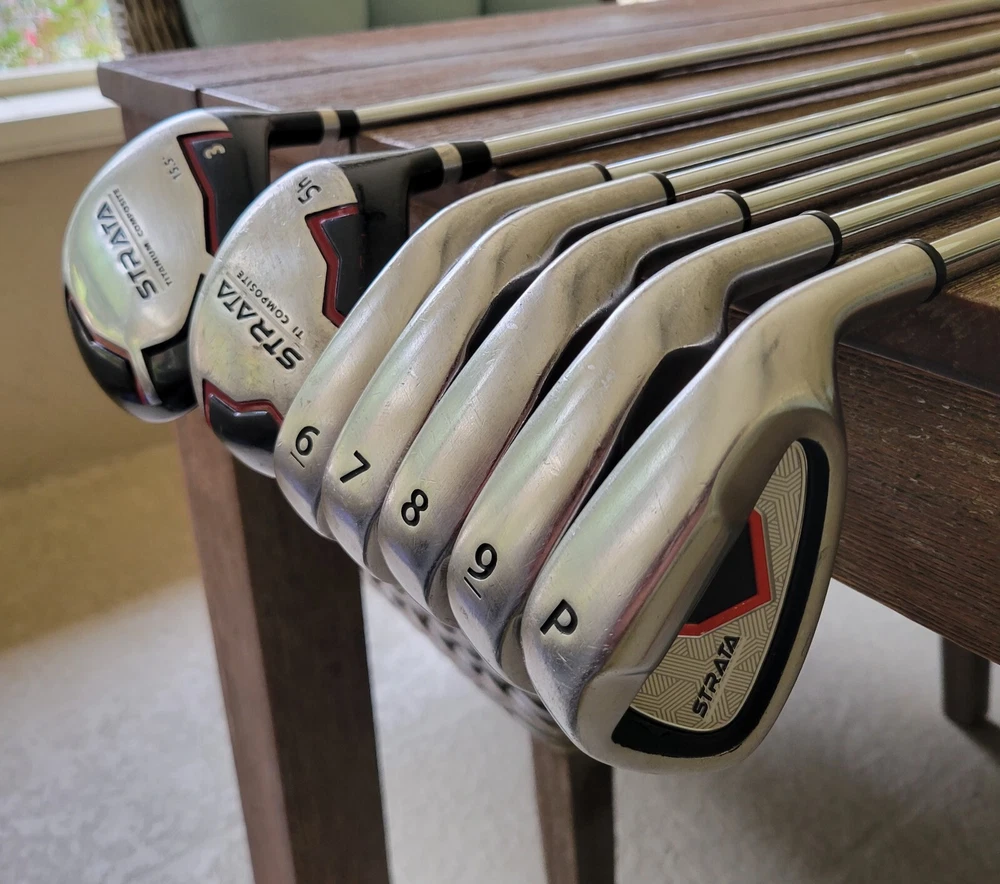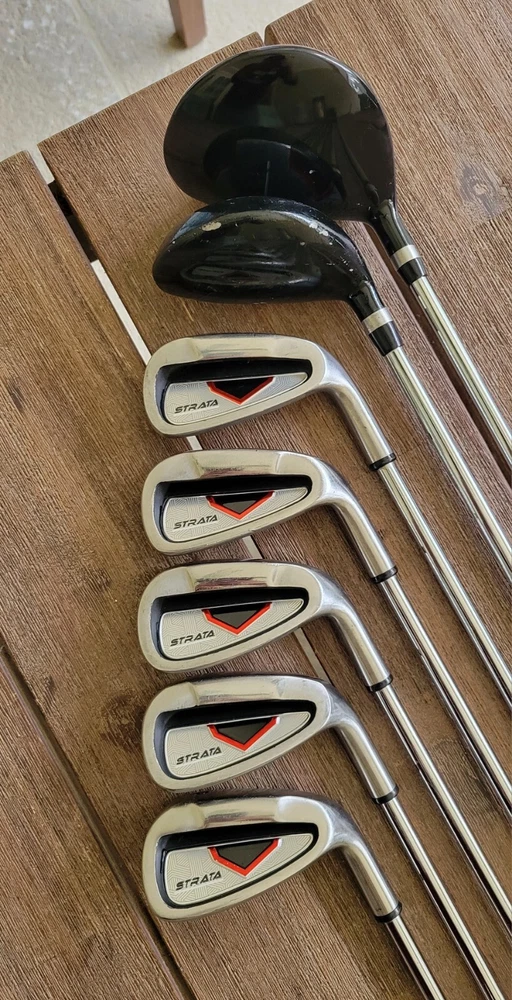 Good condition. Right handed. Comes with Callaway STRATA 3 fairway wood, 5 hybrid, 6789P irons. Steel shafts. Please review each picture thoroughly. You will receive the exact golf clubs pictured. Shipped fast with tracking using UPS ground. Only shipped to mainland US (48 states). No p.o. boxes. Thanks for shopping!