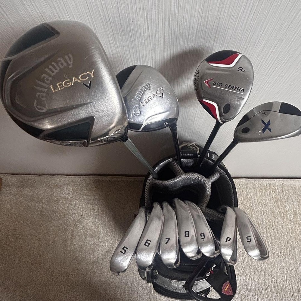 Callaway Tour Stage 12-Piece Men’s Golf Set with Caddy Bag Right-Handed Key Features This is a complete 12-piece men's right-handed golf club set, ideal for beginners. It includes a Callaway Legacy 10.5° driver, Callaway Legacy 5W and 9W fairway woods, a Callaway Big Bertha U3 utility, Tour Stage ViQ irons (5-P, 6-9, S, P), a Taylor Made Rossa Monza putter, and a Tour Stage 7-piece cart bag. The clubs feature gentle carbon shafts and are suitable for course play. The set shows signs of use, such as scratches, dirt, and dents, but remains fully functional. The putter grip has been replaced, and the bag's zippers work smoothly. Please review photos for detailed condition. Item Specifics: - Brand: Callaway, Tour Stage, Taylor Made - Model: Legacy, ViQ, Rossa Monza - Club Type: Driver, Fairway Wood, Utility, Iron, Putter - Shaft Specifications Brand Tourstage Country Japan Product Description Item Title Men'S Tour Stage Callaway 12-Piece Golf Set With Caddy Bag Payment Supports managed payments Please pay within 5 days after auction is finished. About Us We are located in Japan. It's our pleasure to make you happy by proposing our recommend item. If you have any questions or request about items, please feel free to ask us. International Buyers - Please Note: -Import duties, taxes, and charges are not included in the item price or shipping charges. These charges are the buyer's responsibility. -Please check with your country's customs office to determine what these additional costs will be prior to bidding/buying. -These charges are normally collected by the delivering freight (shipping) company or when you pick the item up - do not confuse them for additional shipping charges. -We do not mark merchandise values below value or mark items as - gifts - The US and International government regulations prohibit such behavior. Thank you for your understanding.