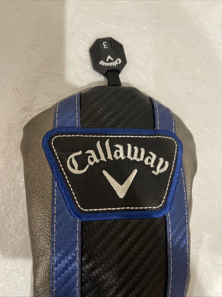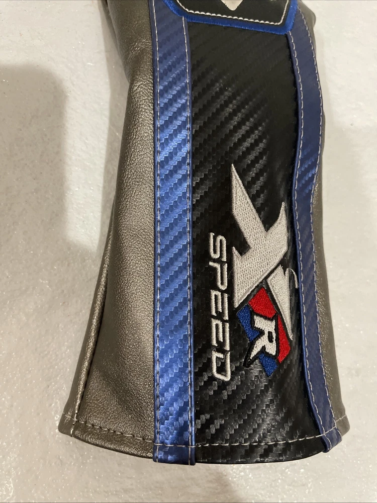 The Callaway XR Speed Fairway Wood Headcover is a single item set designed for golfers. It features a blue, black, and silver color scheme with Callaway branding. Made of leather and acrylic, it provides easy identification and use for golf clubs. This headcover is specifically designed for the XR Speed model, ensuring protection and style on the golf course. Used in Excellent Condition