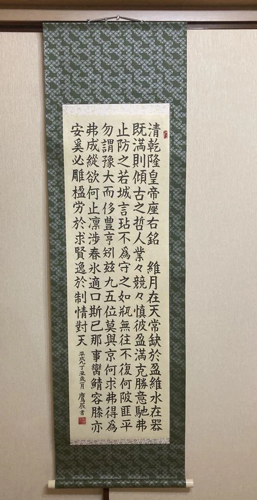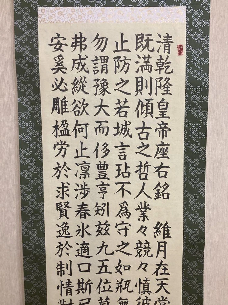 Item Title Calligraphy Hanging Scrolls: Emperor Qing Qianlong Motto Payment Supports managed payments Please pay within 5 days after auction is finished. About Us We are located in Japan. It's our pleasure to make you happy by proposing our recommend item. If you have any questions or request about items, please feel free to ask us. International Buyers - Please Note: -Import duties, taxes, and charges are not included in the item price or shipping charges. These charges are the buyer's responsibility. -Please check with your country's customs office to determine what these additional costs will be prior to bidding/buying. -These charges are normally collected by the delivering freight (shipping) company or when you pick the item up - do not confuse them for additional shipping charges. -We do not mark merchandise values below value or mark items as - gifts - The US and International government regulations prohibit such behavior. Thank you for your understanding.