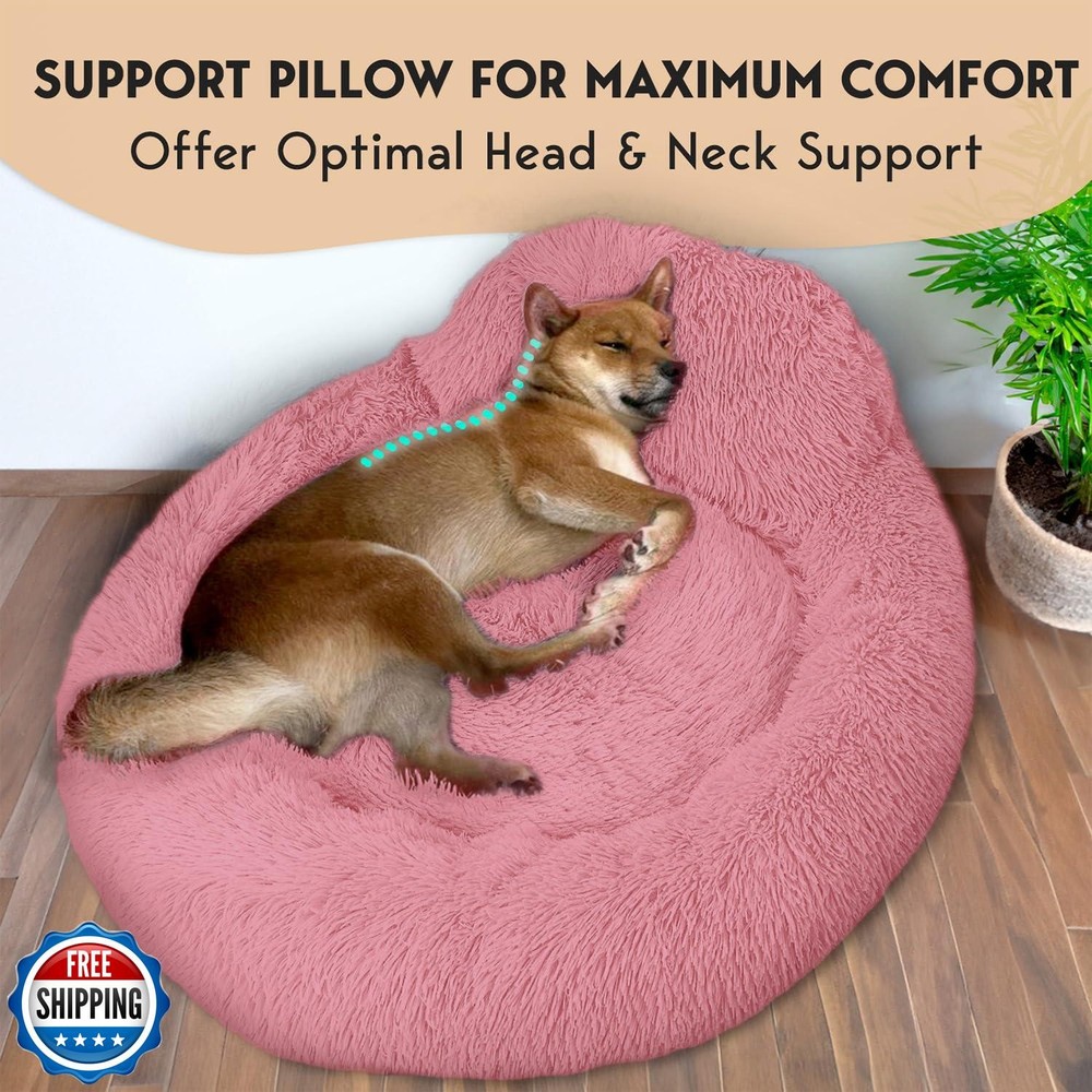 My dog absolutely loves this bed! The plush faux fur is so soft and cozy, and the donut shape provides great support for her joints. The anti-slip bottom keeps it in place, and it’s held up well after washing. Perfect for my 30 lb pup who loves to curl up—she sleeps soundly every night. The pink color is cute and matches our home. Highly recommend for any pet who loves extra comfort!