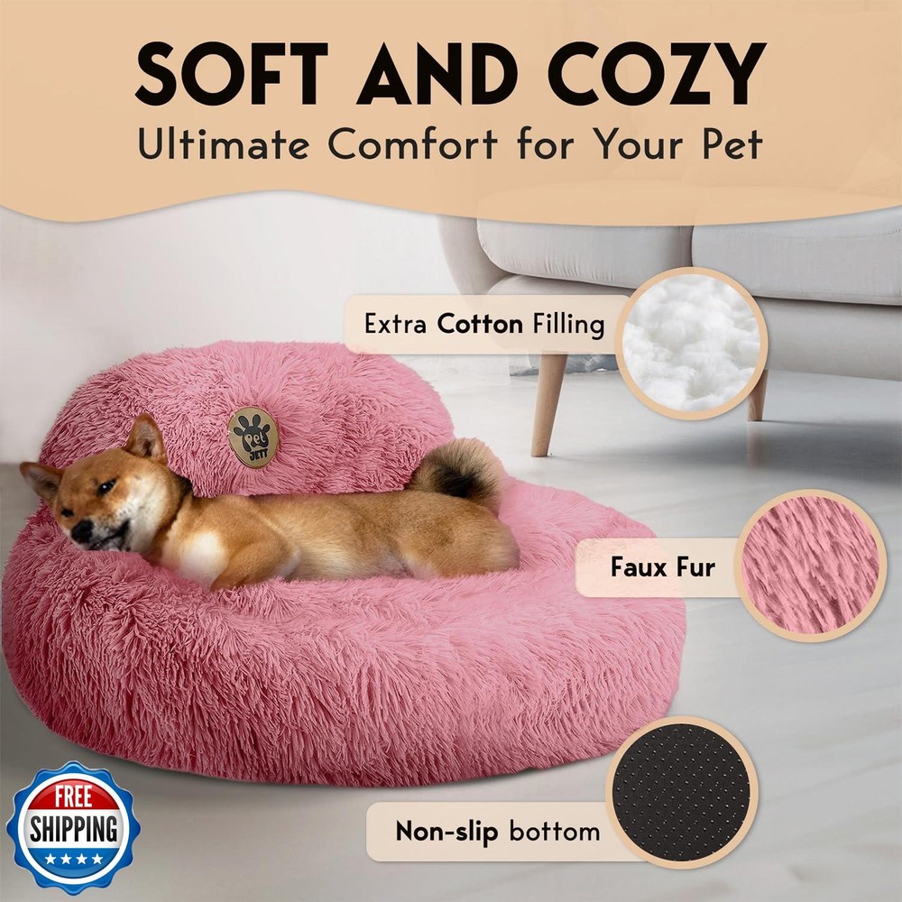 PetJett Calming Medium Dog Bed - 30'' Round Dog Beds, Anti-Slip and Washable Super Soft Fluffy Plush Donut Bed, Anti-Anxiety Premium Comfort Pet Bed, Fits Dogs up to 45 lbs - Pink Features 【Soft and Cozy】 Indulge your furry friend in supreme comfort with our luxury faux fur calming dog bed. This eco-friendly furniture being 20% more plush than any other in the market, offers unmatched softness that pets adore, while the super-soft extra cotton filling ensures exceptional support. Designed for ultimate relaxation, the bed provides a warming environment where your pet can rest comfortably. The non-slip PVC dot fabric bottom ensures maximum stability, enhancing safety for your pet. 【Easing Dog Anxiety】Our donut dog bed design is perfect for pets who love to curl up. Featuring an 8’’ raised rim, our pet bed provides optimal support, creating a secure environment. The round shape, mimicking a pet mom’s embrace, alleviates muscle and joint pain, making it ideal for cuddling and burrowing. Made with high-quality, pet-safe materials, it forms a warm, fluffy, calming space that is anti-anxiety and promotes deep, restful sleep. 【Support Pillow for Maximum Comfort】 Our uniquely designed support pillow for dog beds—small, medium, and large sized dogs—is crafted with precision, offering unparalleled head and neck support. This ensures your furry friend experiences optimal relaxation and relief during rest and sleep. With its plush and fluffy design, it guarantees incomparable comfort, providing your pet with the utmost serenity they deserve. This pillow is the perfect blend of comfort and coziness! 【Choose the Perfect Size】Our round dog bed comes in 3 sizes tailored to your pet's needs. Select the Small size (23’’x23’’x8’’) for dogs up to 25 lbs, the Medium (30’’x30’’x8’’) for up to 45 lbs, and the Large (36’’x36’’x10’’) for dogs up to 100 lbs. Ensure your pet's ultimate comfort and calmness with the ideal size for their breed and weight. If uncertain about the size, choose one size larger to ensure added comfort. It comes in 4 cute colors pink, grey, beige, and dark grey. 【Easy to Clean】Keep your pet bed looking and smelling fresh with our large, durable dog t bed. It is completely machine and hand-washable. simply toss the entire bed into the washer. Safe for both washer and dryer, you can choose to hand wash or machine wash on a gentle cycle, followed by tumble dry on low heat for convenient and hassle-free maintenance. Shipping Free & Fast Shipping: We offer free shipping to most of the USA with a normal delivery time of 3-7 days. However, due to the current situation, additional delivery time (up to 3 weeks) may be required for some items. Alternative Carriers: We may use alternative carriers (e.g., USPS, FedEx, UPS) to ensure your package arrives safely and on time. Due to the use of multiple carriers, we are unable to provide a tracking number automatically. Handling Time: Orders are processed and shipped within 1-2 business days of receiving cleared payment. Shipping Restrictions: Shipping to Alaska, Hawaii, Puerto Rico, Guam, and other US territories may incur shipping charges or delivery restrictions. Please contact us before ordering, or your order can be refunded/cancelled. State Restrictions: Certain items may not be shipped to California due to state regulations. Contact for Tracking Updates: If you require tracking updates or have any concerns about the delivery of your order, please feel free to contact us, and we will be happy to assist you. Return Policy 30-Day Hassle-Free Returns: If you are not completely satisfied with your purchase, you can return the item for free within 30 days of receiving it for a full refund or exchange. Easy Return Process: Contact us, and we will provide you with a prepaid return shipping label and detailed instructions. No Restocking Fee: There are no restocking fees for returns. However, the buyer is responsible for return shipping costs if the return is not due to a seller"s error. Refund Processing: Refunds will be processed within 1 business day of receiving the returned item in its original condition. Feedback Your feedback is extremely important to us. We strive to provide the best products and customer service possible. If you are satisfied with your purchase, please take a moment to leave us a positive review. If you have any concerns or issues with your order, please contact us before leaving negative feedback. We are committed to resolving any problems and ensuring your satisfaction. Contact Us If you have any questions or concerns, please feel free to reach out to our customer support team. You can contact us through the eBay messaging system. We are available Monday to Friday, 9:00 am to 5:00 pm EST, and we will do our best to respond to your inquiry within 24 hours. Thank you for supporting our small family business!