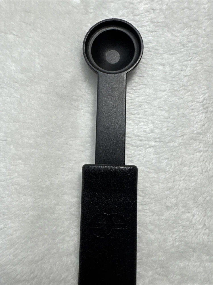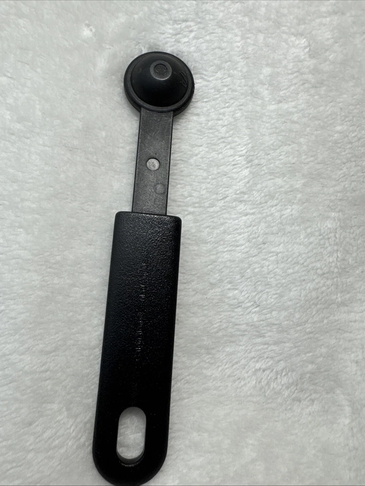 This Calphalon 1/2 TEASPOON measuring spoon is a must-have in any kitchen. It features a solid pattern in black and gray, with a set that includes one spoon. The spoon is made of nylon and silicone, making it heat resistant and easy to clean. The lightweight spoon has a soft grip and is dishwasher safe. Perfect for cooking, this measuring spoon is a great addition to any kitchen tool collection. It is manual in making method and has a unit quantity of one. The spoon's handle is made of silicone and nylon, making it durable and long-lasting. Get accurate measurements for your cooking needs with this Calphalon measuring spoon.