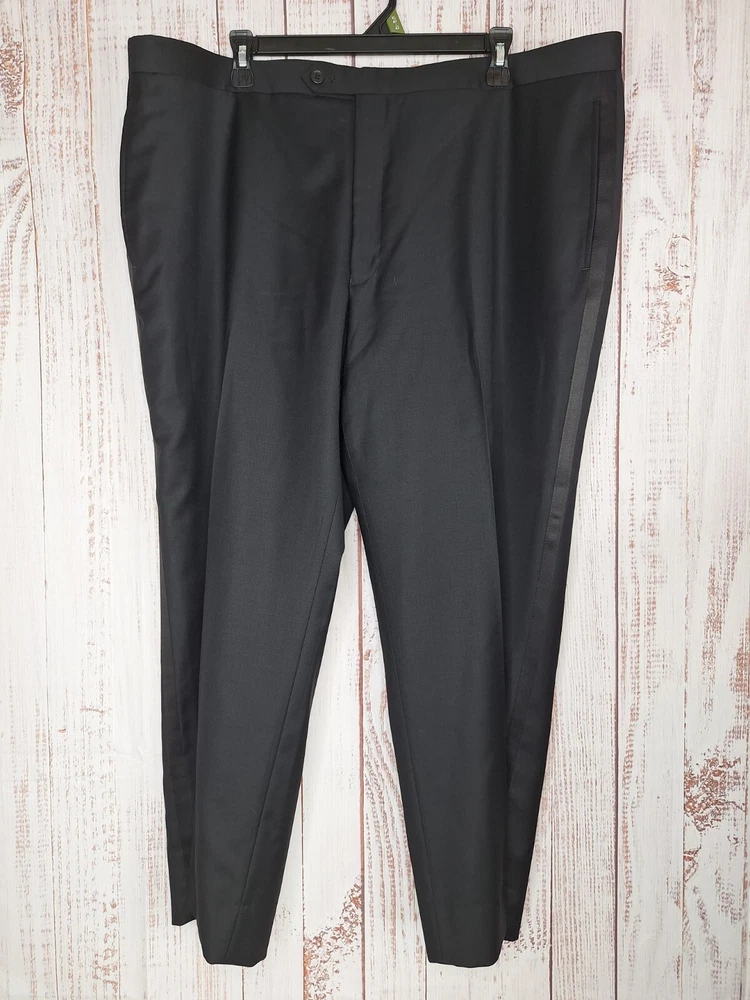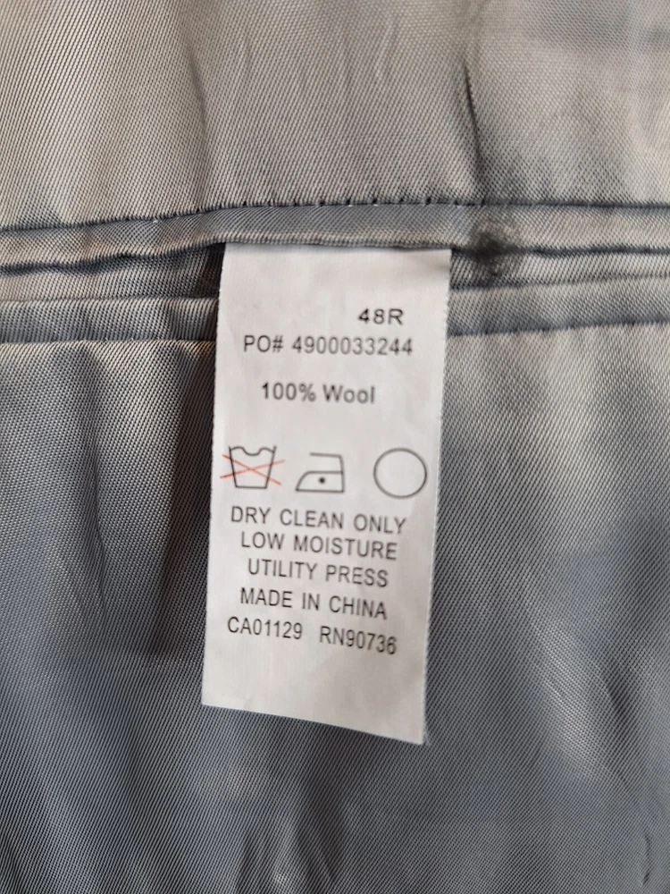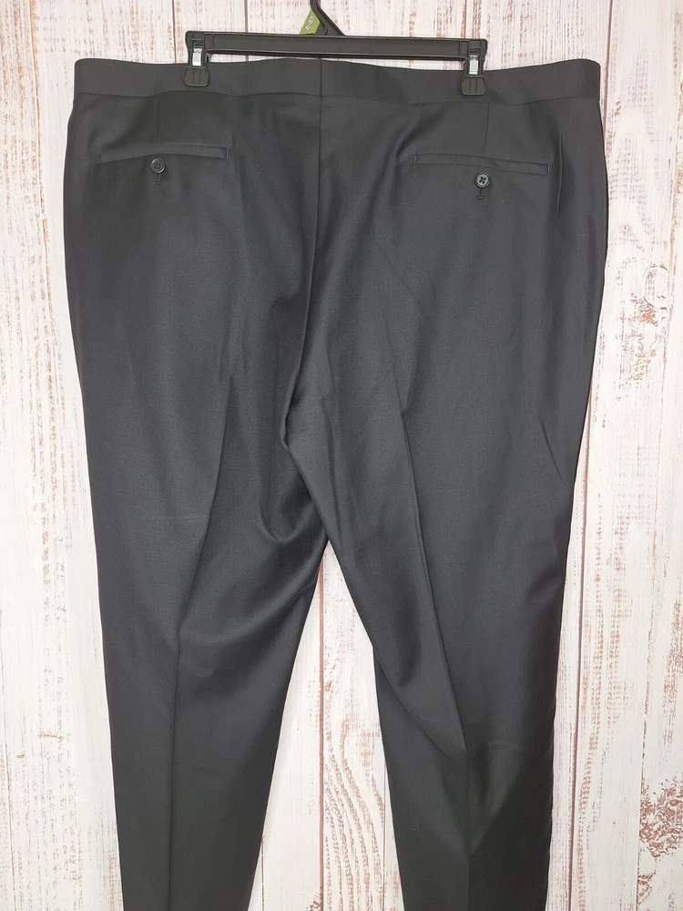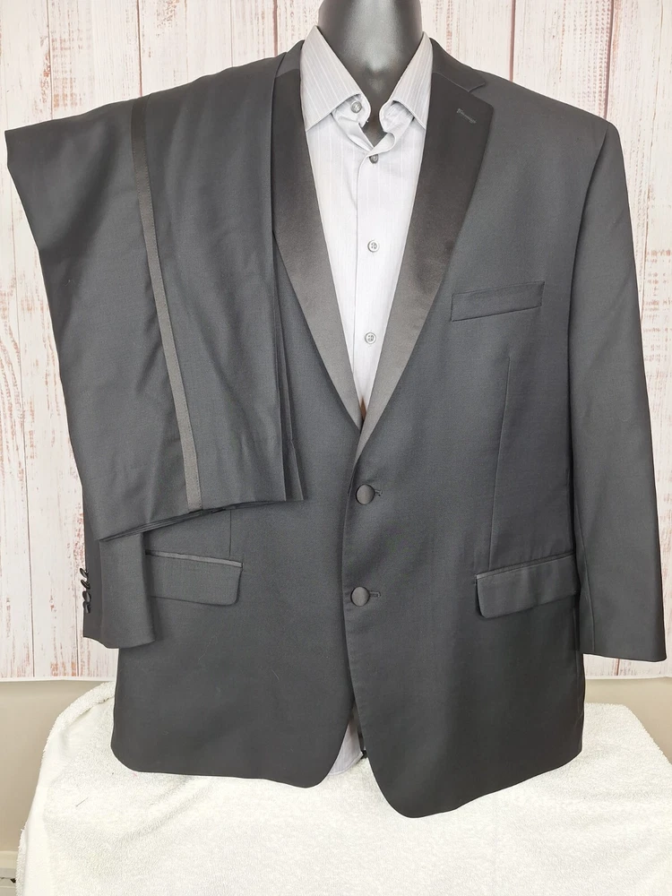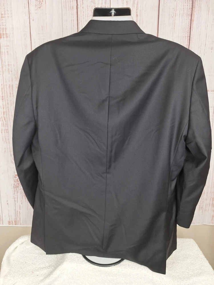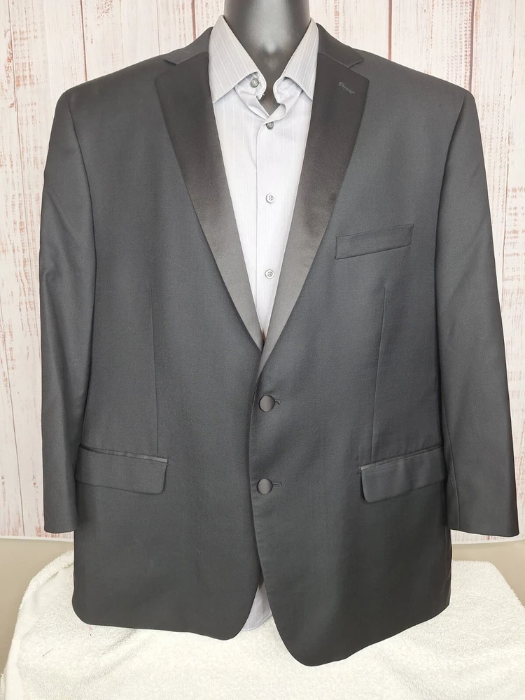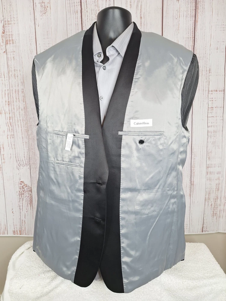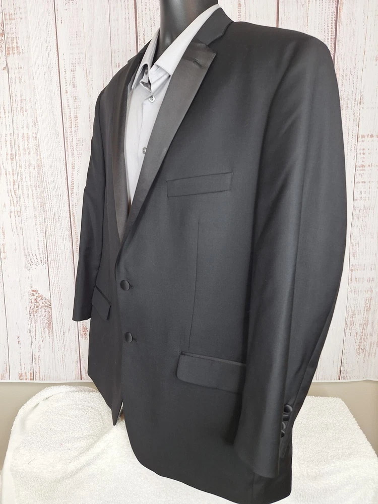 Jacket Lapel Style: Notch Type: Suit Season: Fall, Spring, Summer, Winter Front Type: Flat Front Size Type: Regular Jacket/Coat Length: Short Size: 48 Number of Pieces: 2 Piece Jacket Front Button Style: Two-Button UPC: Does not apply Garment Care: Dry Clean Only Inseam: 28 in Pattern: Solid gtin13: Does not apply Brand: Calvin Klein Material: Wool Personalize: No Chest Size: 48 Color: Black Occasion: Business, Casual, Formal, Party/Cocktail, Travel, Wedding Waist Size: 42 in Department: Men Theme: Classic, Designer, Elegant, Modern, Preppy, Wedding Jacket Cut: Single-Breasted Style: Tuxedo Jacket Vent Style: Double-Vented Fit: Regular Jacket Sleeve Button Style: Three-Button Features: Inner Pockets Handmade: No