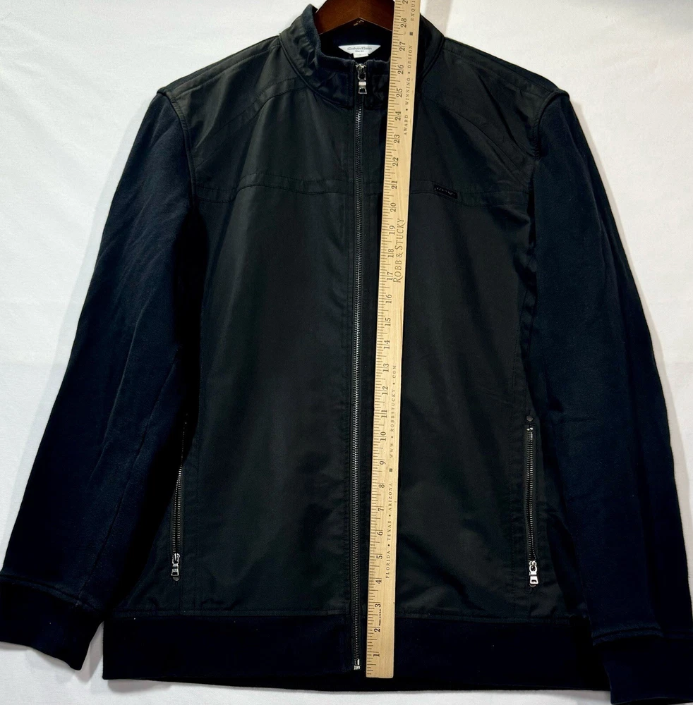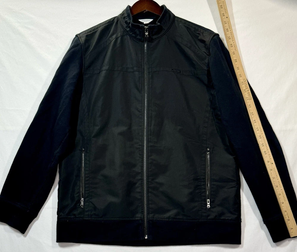 Elevate your everyday style with this Calvin Klein slim fit jacket. The black color and full zip design make it a versatile piece to wear in any setting. The jacket features a brand logo and is made with high-quality materials to ensure durability. This jacket is perfect for men who want to look sharp without sacrificing comfort. It is designed to fit slim and has a regular size type. The Calvin Klein jacket is an excellent addition to any wardrobe and can be worn for any occasion.
