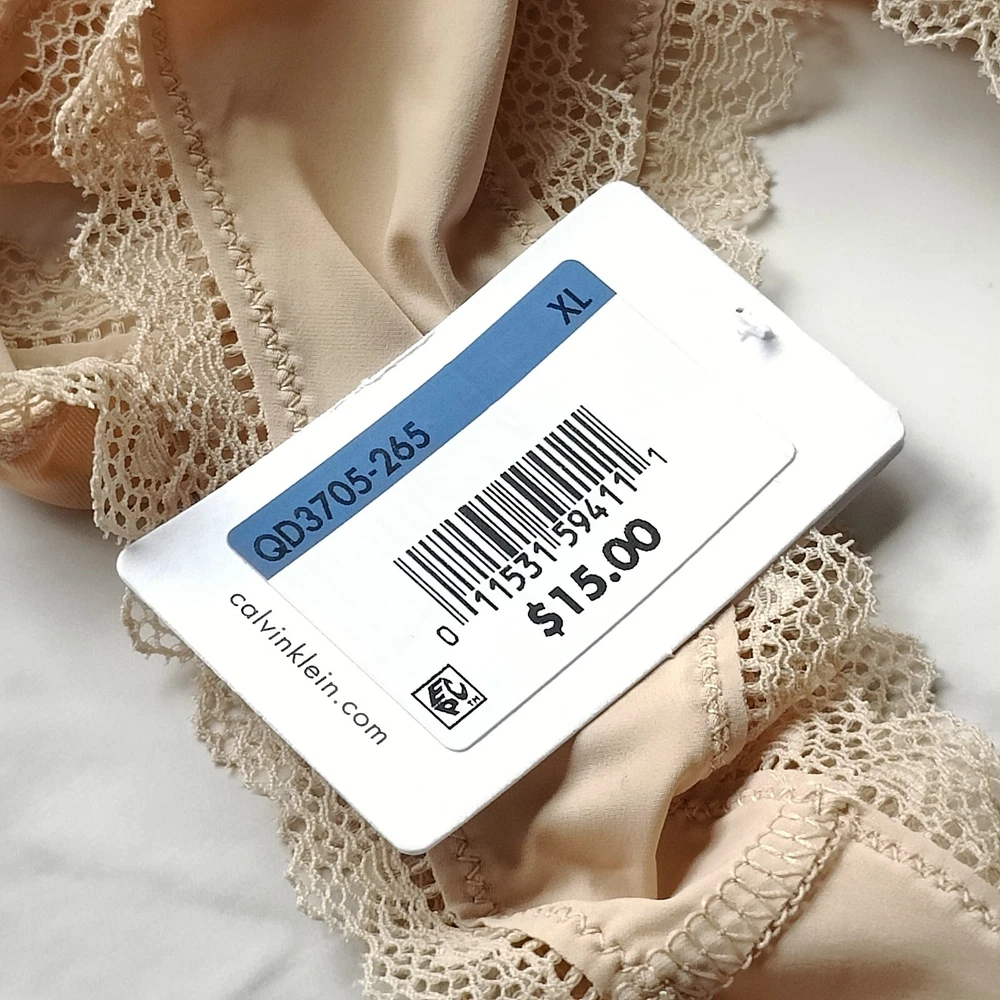 All photos are taken by Goob's Closet & Boutique and may not be reused without permission. Goob's Closet & Boutique lists on multiple platforms. If you choose to wait or "Watch", the listing may sell out on another platform first, and will then no longer be available for purchase on eBay without notice to you. With its minimal back coverage and low-rise design, this thong panty offers a sleek, barely-there fit that's perfect for both special occasions and everyday wear. Crafted from ultra-smooth stretch microfiber fabric, it feels silky-soft against your skin while providing a clean, polished look. Plus, the scallop-edged ornate lace trim at the waist and leg openings adds a touch of femininity and elegance. And the finishing touch? The iconic Calvin Klein logo at the waistband for a classic yet contemporary feel. Details Thong Style Minimal Back Coverage Low Rise Ultra Sleek and Smooth Microfiber Fabric Classic Scallop Edge Ornate Lace Trim at Waist and Leg Openings Iconic Calvin Klein Logo at Waist Style No. QD3705 Color: Desert Material Body: 83% Nylon, 17% Elastane Gusset Lining: 100% Cotton Care Machine Wash Measurements Calvin Klein Size S (Small) will fit Waist 26.5-27.5 inches, Hips 36.5-37.5 inches best. Calvin Klein Size M (Medium) will fit Waist 28.5-29.5 inches, Hips 38.5-39.5 inches best. Calvin Klein Size L (Large) will fit Waist 30.5-31.5 inches, Hips 40.5-41.5 inches best. Calvin Klein Size XL (Extra Large) will fit Waist 33.5-34.5 inches, Hips 43.5-44.5 inches best.